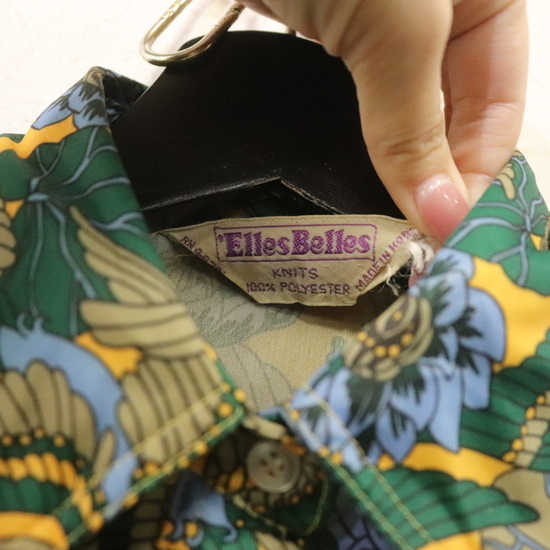 h895 70sビンテージ EllesBelles 長袖シャツ■1970年代製 約Sサイズくらい レディース イエロー 総柄 アニマル フラワー アメカジ 古着 [浏览原始页面]