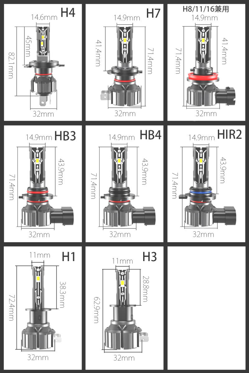 | LEDバルブ形状 | H1 H3 H4 H7 H8/H9/H11/H16兼用 HB3 HB4 HB5 HIR2選択可 |