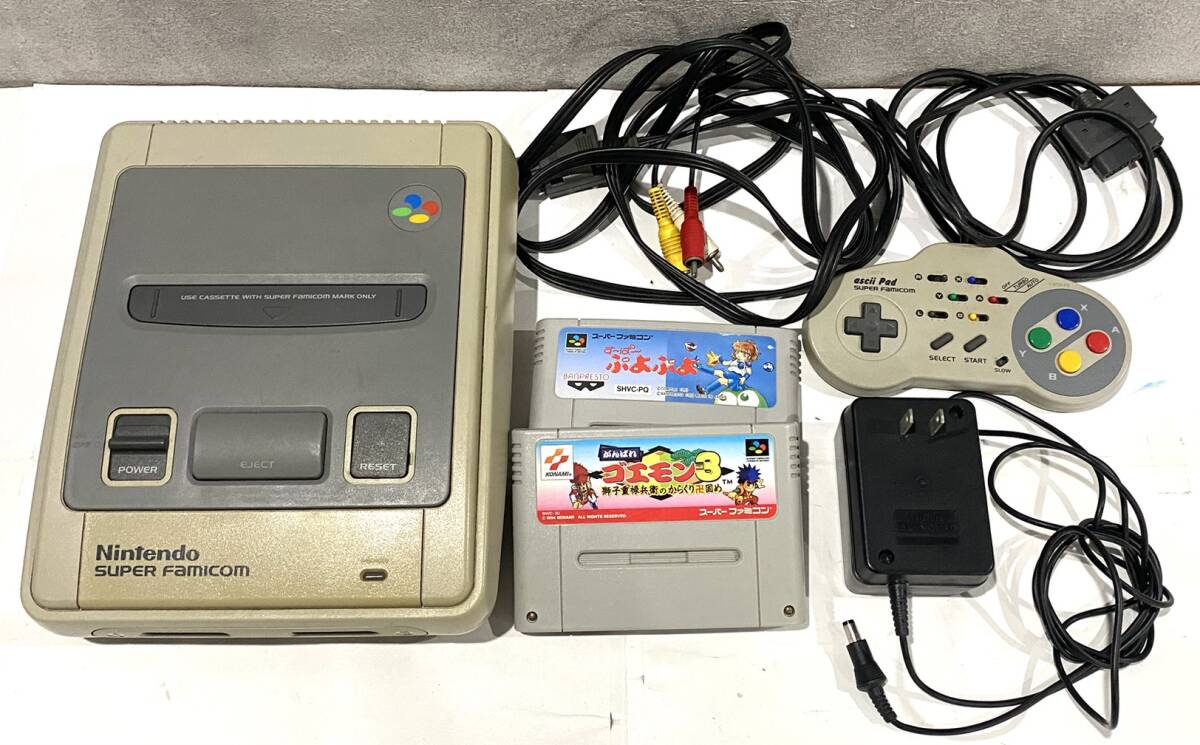 | h591★1円~中古現状/動作未確認【Nintendo Super Famicom】スーパーファミコン 本体 HVC-002 ソフト2点付 ニンテンドー ゲーム機 任天堂 |