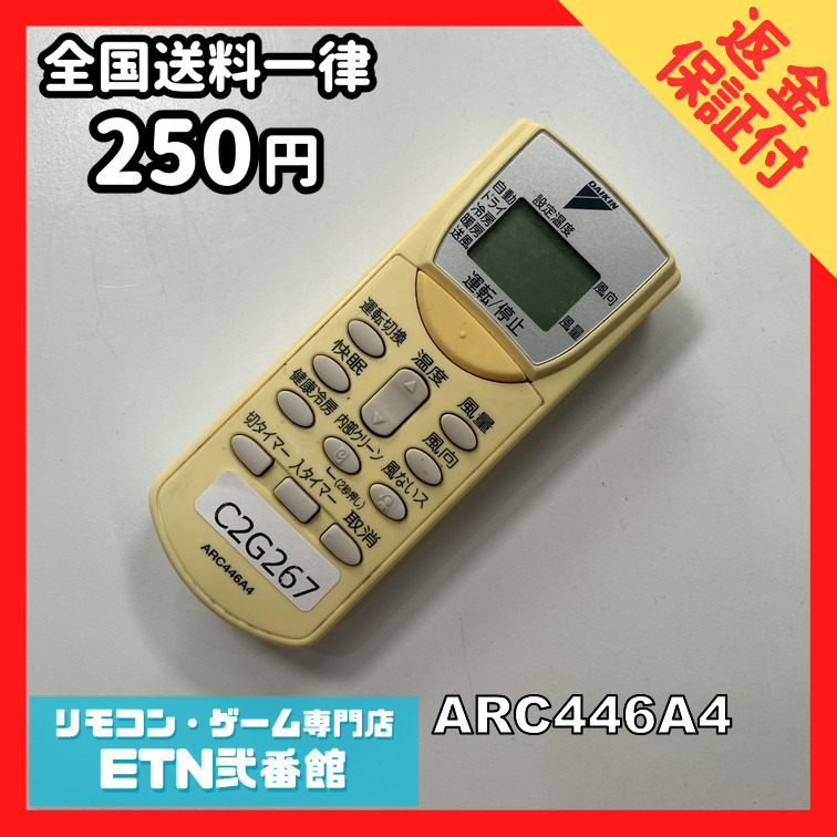 C2G267 【送料250円】エアコン リモコン / Daikin ダイキン ARC446A4 冷房 暖房 動作確認済み★即発送★ [浏览原始页面]