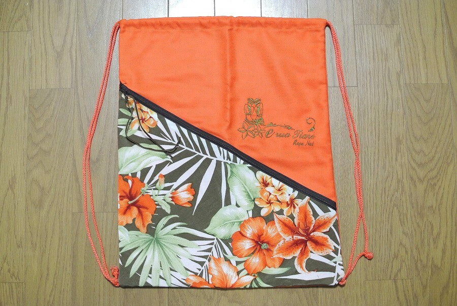 2017年、イースター島への旅行の際に現地で購入したナップサックです。 「O'rua Tiare(二輪の花)」「Rapa Nui(イースター島)」の刺繍が施されており、「イースター島の二輪の花」という意味です! 日本では入手困難な現地でしか購入できない希少なバッグで、日常使いにも便利な一品です! 色は、オレンジです。 こちらのモニターでは、ほぼ写真の色合いだと思います。 |