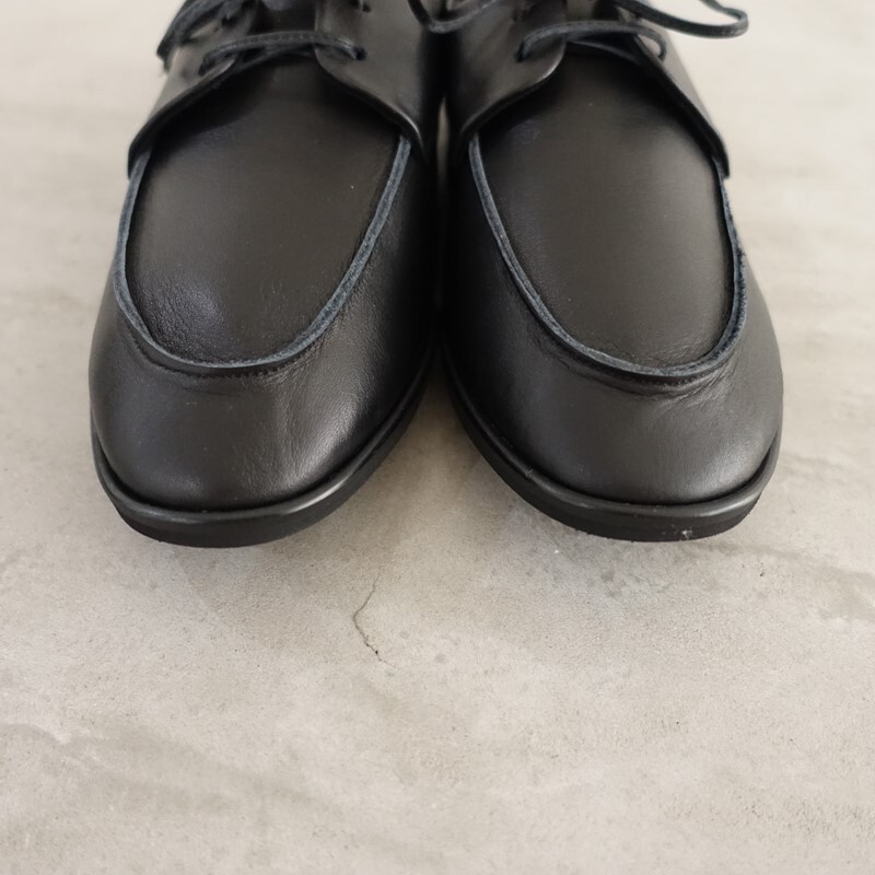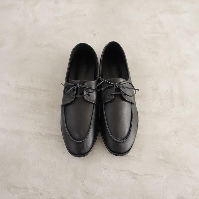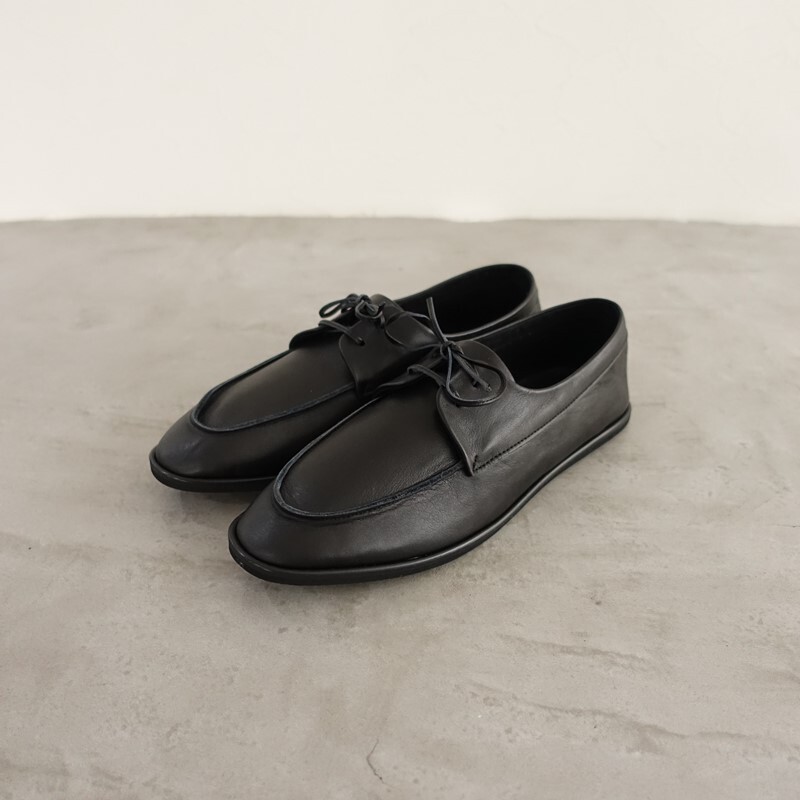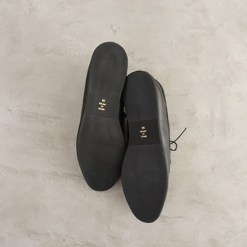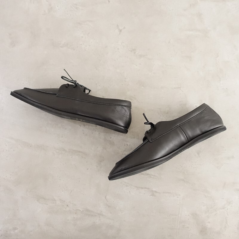 | 2025年AWコレクション、Spick and Spanのソフトローファーです。カラーは黒で素材はレザー、シューレースで着脱していただけ、インソールはクッション性がございます。定価(メーカー希望小売価格)20,900円の商品です。 |