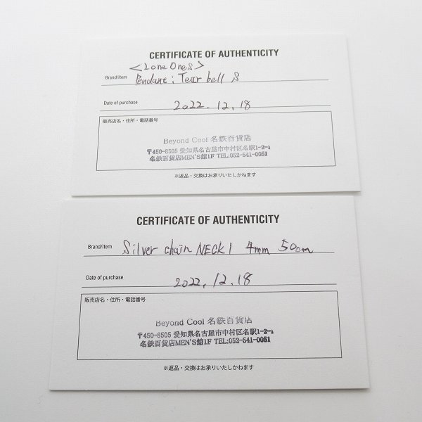※詳細な状態は商品説明内をご確認ください| 【ギャラ付】 LONE ONES/ロンワンズ Tear Bell/ティアベル ペンダントトップ/S ビヨンクールチェーン付 /UPK | ||||||||||||||||||||||||||||||