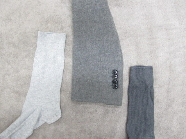 自分と同じようにグレーの色合いに拘る人用に、ユニクロ靴下のライトグレーとダークグレーを一緒に写しました。