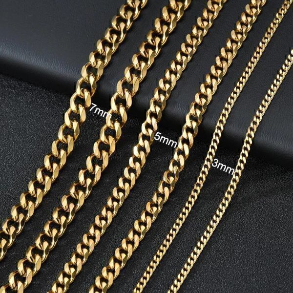| Feature/Shape: Stainless Steel 3,5,7mm Curb Cuban Link Chain Necklaces |
