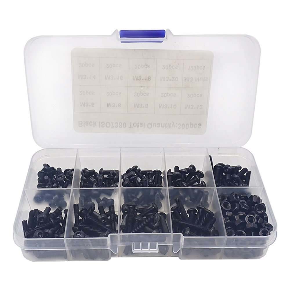 こちらの商品は六角穴付きボルト、ナット300個セットです。 高強度ボルトで、様々なシーンで活躍します。 持ち運びに便利な仕切りがついた収納ケース付。 ■ねじ M3×5(20個)/M3×6(20個)/M3×8(20個)/M3×10(20個) M3×12(20個)/M3×14(20個)/M3×16(20個)/M3×18(20個) M3×20(20個) ■ナット M3ナット(120個) ※ケース開封時のねじの飛び出しに注意してください。 | ||
