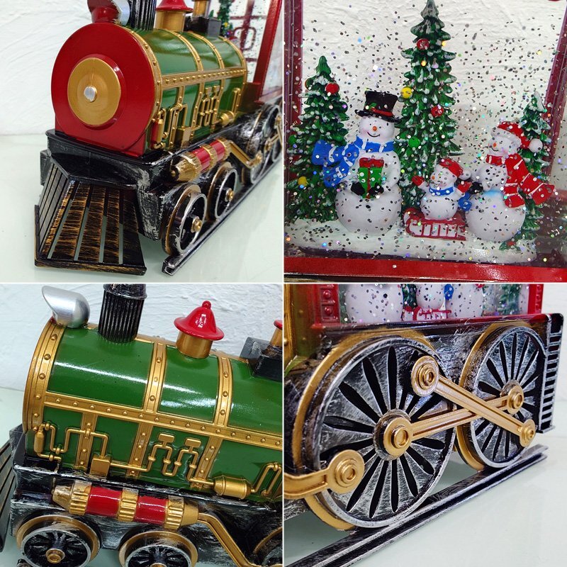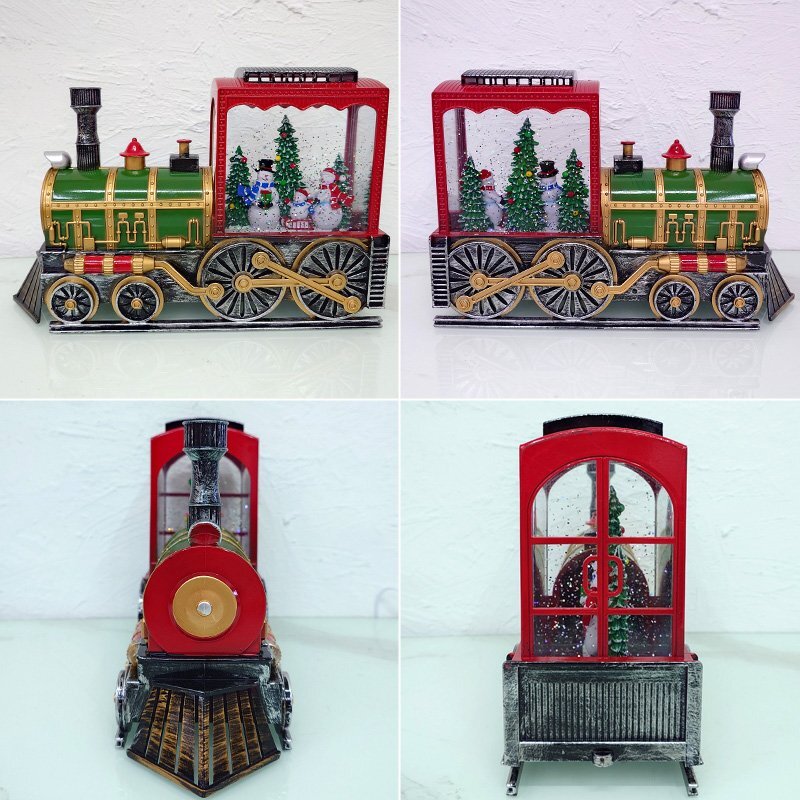 ![]() クレトロな蒸気機関車をモチーフにした、心ときめくクリスマススノードームライト。 深みのあるグリーンとレッドのボディに、ゴールドの装飾をあしらったクラシカルなデザインが印象的です。 車両の後部には、サンタクロースやスノーマンたちがツリーを囲む賑やかなシーンが広がり、スイッチを入れるとふんわりと雪が舞い、温かい光が幻想的に灯ります。 リビングや玄関、ツリーの足元などに飾るだけで、お部屋が一瞬でクリスマスムードに包まれます。 大人も子どもも楽しめる、心温まるクリスマスインテリアです。 給電方法は2つ、付属のUSBコードで使用する他、 単三電池3本でコードレスとしての使用も可能! 精巧に作られている為、ライトを点灯させずに 単体でオブジェとして使用しても存在感抜群です! ギフトなどにもおすすめです! ●動作パターン● ・未点灯 ・LED点灯(音楽なし) ・LED点灯(音楽あり) ※乾電池、USB出力用のアダプターは付属しておりません。 点灯時の様子は動画でご覧くださいませ。 動画はこちら ↓↓↓↓↓↓↓↓↓↓↓↓↓ こちらをクリック! 【商品詳細】 サイズ(約): 高さ19cm×幅29cm×奥行き10cm コード長さ(約):98cm 重量(約):1.8kg 素材:プラスチック 【給電方法】 単三電池×3/USBコード |