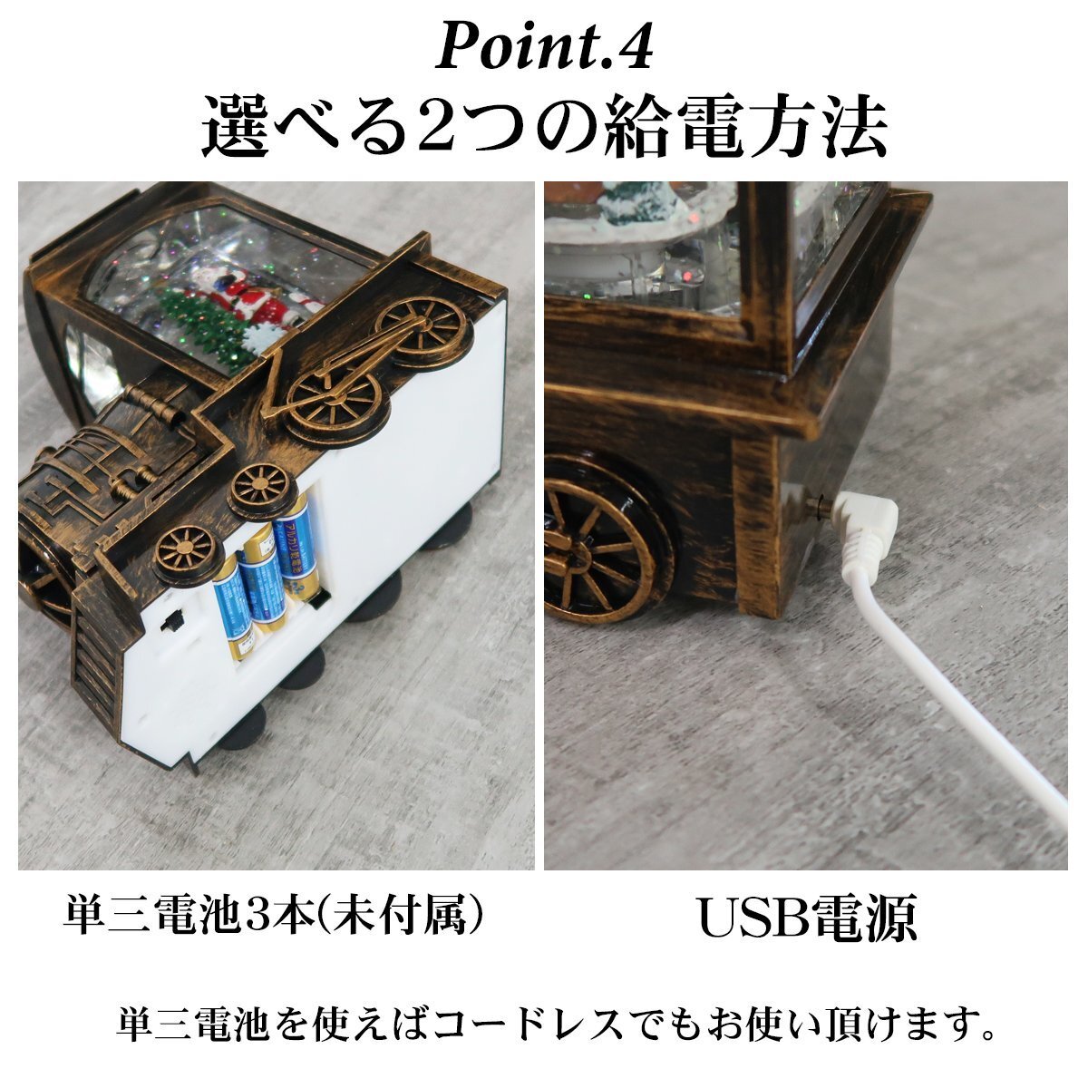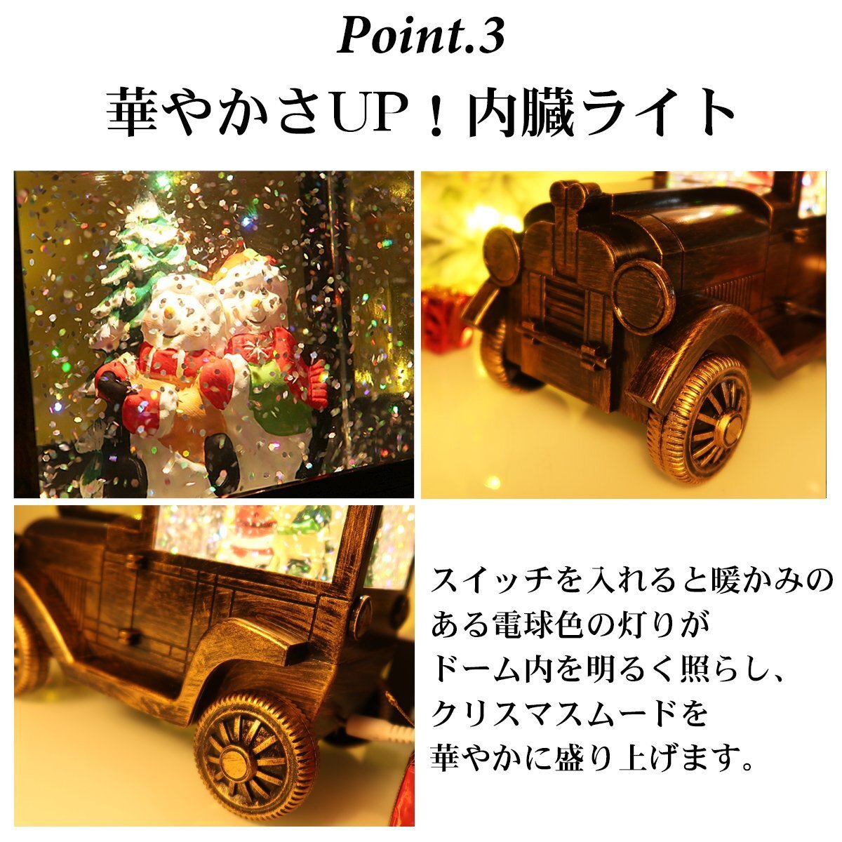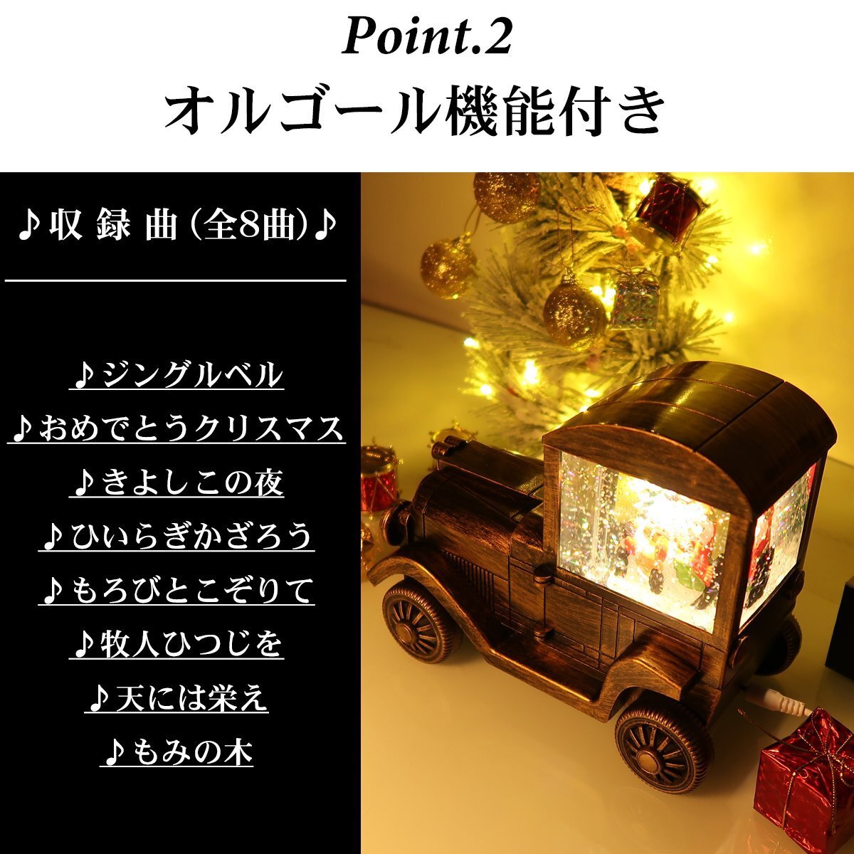 ![]() どこか懐かしさを感じるレトロなスノードーム。 クリスマスを豪華に彩る雰囲気抜群のデザインです! アンティーク感のある昭和レトロを感じる車デザイン。 LEDライトを点灯させるとドーム内のラメが雪の様に舞い降ります。 クリスマスソング8曲を搭載したオルゴール機能付きでさらに雰囲気抜群♪ LEDライトに照らされ、キラキラと輝きながら音楽を奏でる様が クリスマスムードを盛り上げます♪ 心がなごむ絵本のワンシーンのようなスノードームの世界。 置くだけでもクリスマス気分が高まる事間違いなし! 給電方法は2つ、付属のUSBコードで使用する他、 単三電池3本でコードレスとしての使用も可能! 精巧に作られている為、ライトを点灯させずに 単体でオブジェとして使用しても存在感抜群です! ギフトなどにもおすすめです! ●動作パターン● ・未点灯 ・LED点灯(音楽なし) ・LED点灯(音楽あり) ※乾電池、USB出力用のアダプターは付属しておりません。 点灯時の様子は動画でご覧くださいませ。 動画はこちら ↓↓↓↓↓↓↓↓↓↓↓↓↓ こちらをクリック! 【商品詳細】 サイズ(約): 高さ16cm×幅20cm×奥行き11cm コード長さ(約):98cm |