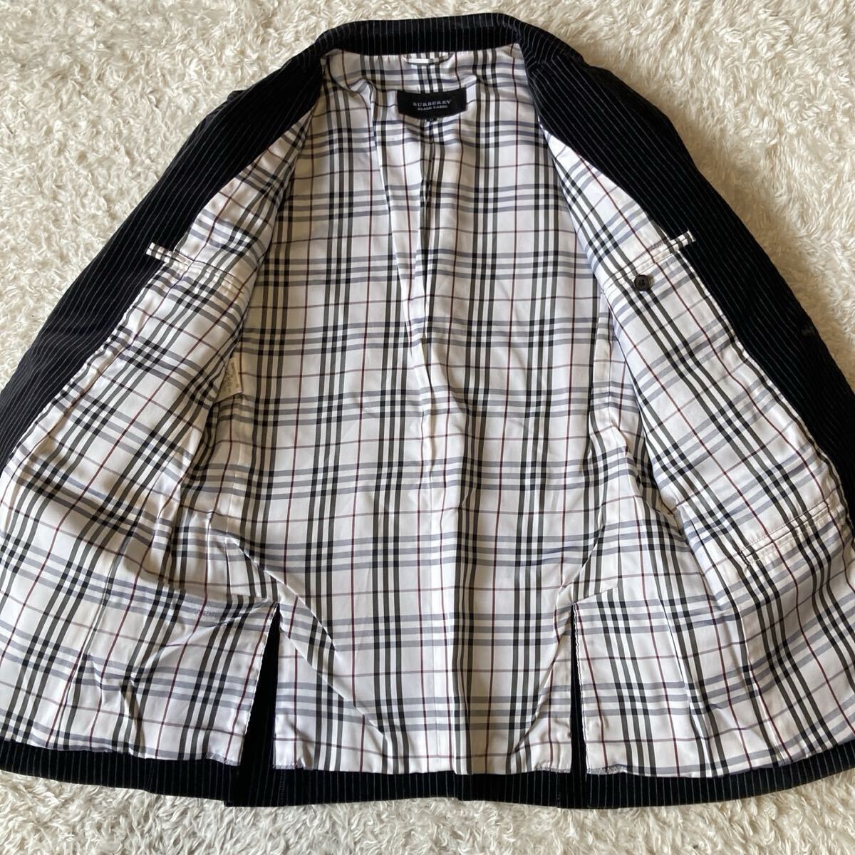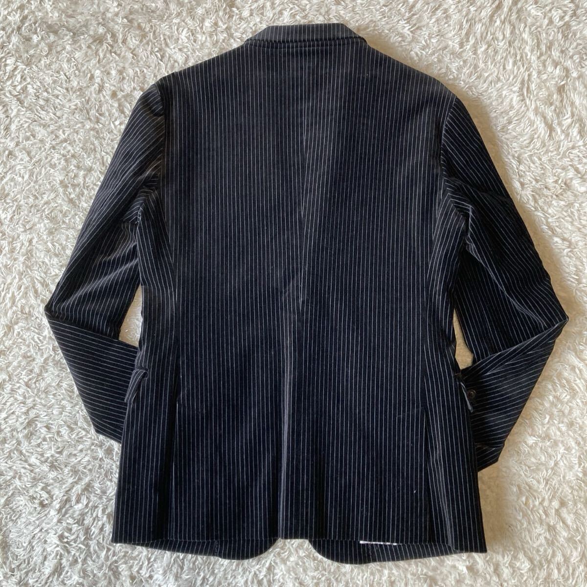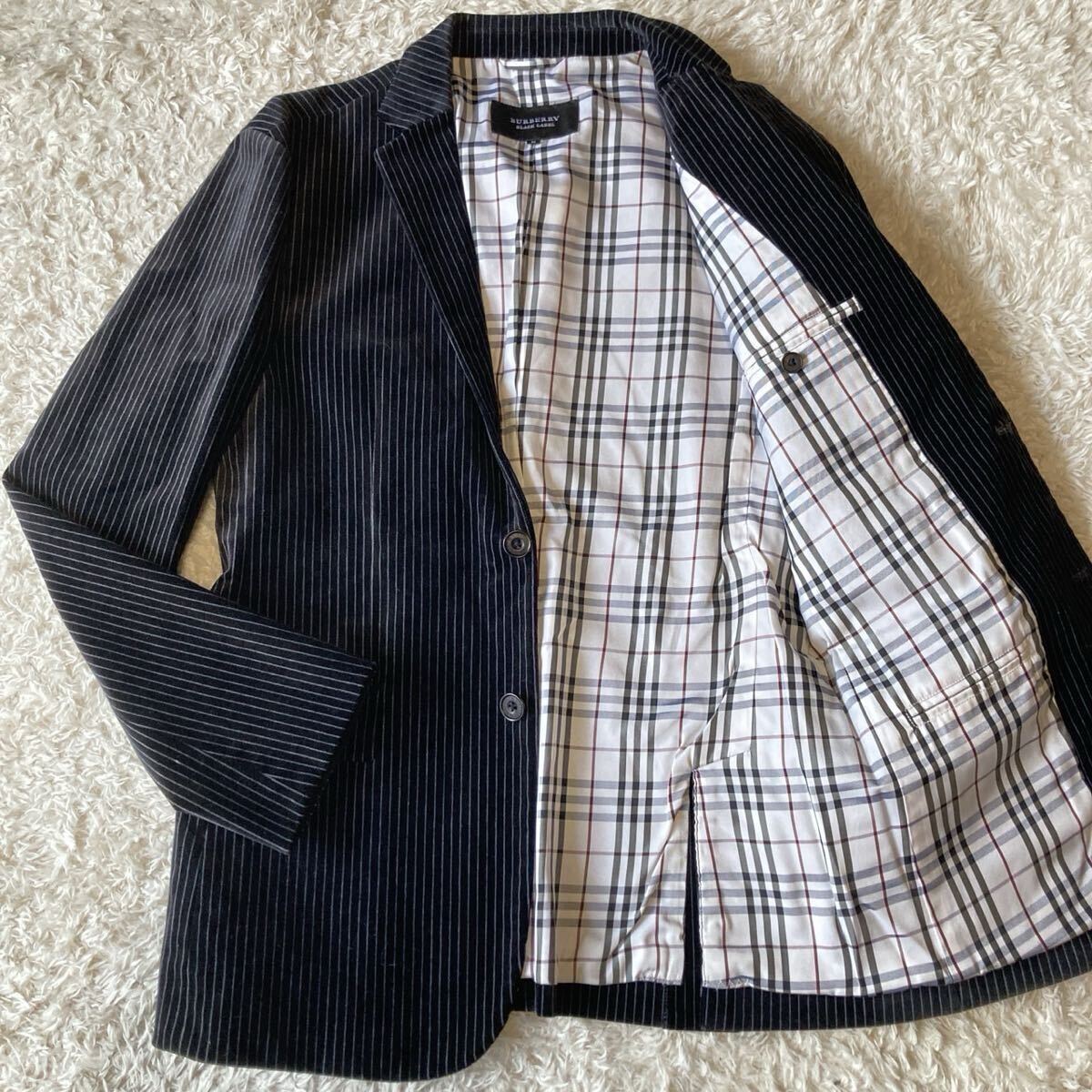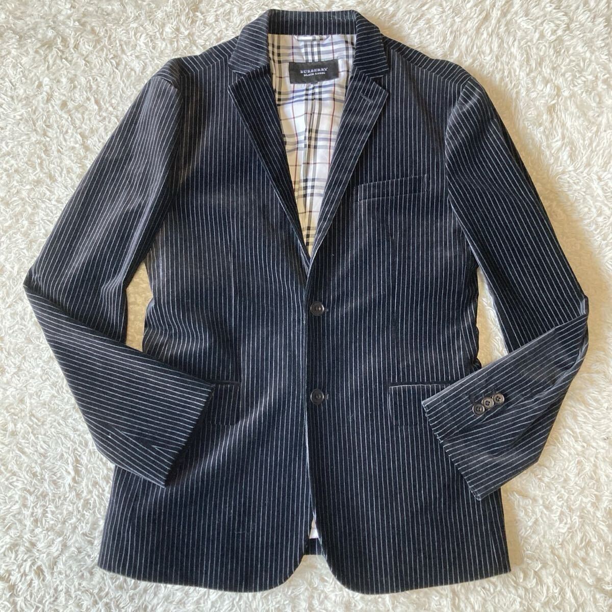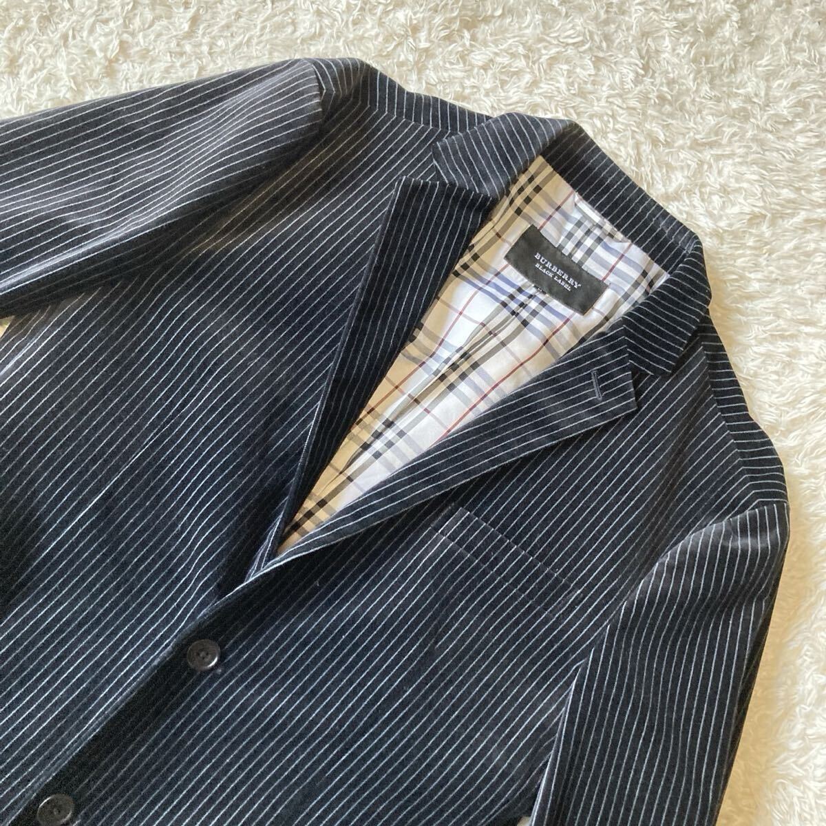 美品!! バーバリーブラックレーベル BURBERRY BLACK LABEL テーラードジャケット ベロア ストライプ Mサイズ ブラック 黒