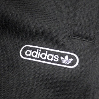 アディダス オリジナルスのジョガーパンツです。カラーは黒系、サイドに白のスリーストライプス、ウェストやリブなどにステッチ刺繍、ウェストは伸縮性があり紐で絞る事も出来ます。ポケットはフロントにジップポケット×2、裾はリブ仕様、裏起毛タイプのスウェットパンツです。