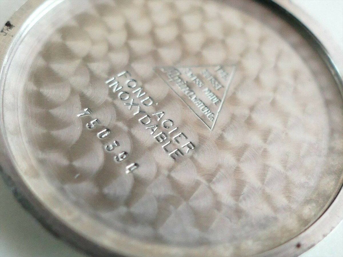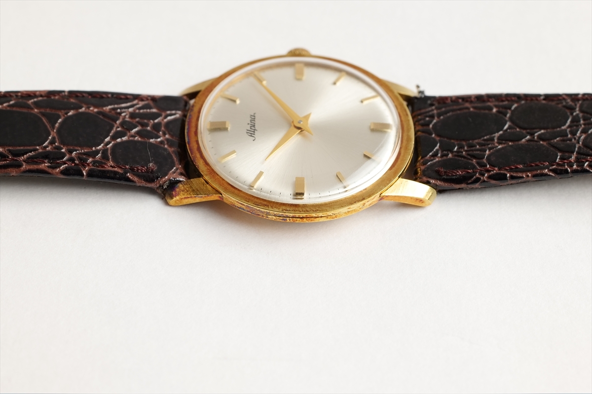 | 【商品説明】 アルピナのCal.590R 手巻き2針の機械式腕時計です。 数年前に購入した後、全く使っていないのでコレクション整理で手放すことにしました。 【サイズ】※全ておおよそです ケース幅:33mm(リューズ含まず)、ケース長さ:39mm(ラグからラグ)、厚み:8mm 【商品の状態】 ・リューズを巻くと動作します。 ・全体的に変色しています。 ・リューズに摩耗あります。 ・裏蓋全体に擦れ傷とこじ開け口付近に傷があります。 ・整備はされていません。 ・未整備の状態で長時間駆動すると摩耗する恐れが有るので精度は測っていません。 ・中古品かつ年代物の為、傷・腐食・汚れ等々あるものとお考えください。 ※自分が気づいた特に目立つ箇所はなるべく記載するようにしていますが、見落としもあると思います。 ※ムーブメントの画像については当方では裏蓋が開けられなかったので購入した際の商品説明画像を転用しています。 【注意事項】 ■商品説明・画像・注意事項をご確認の上、入札をお願いします。 ■傷および汚れ等が気になる方はトラブル回避の為、入札をご遠慮ください。 ■ノークレーム・ノーリターンであることを必ずご了承の上、ご入札ください。 |
