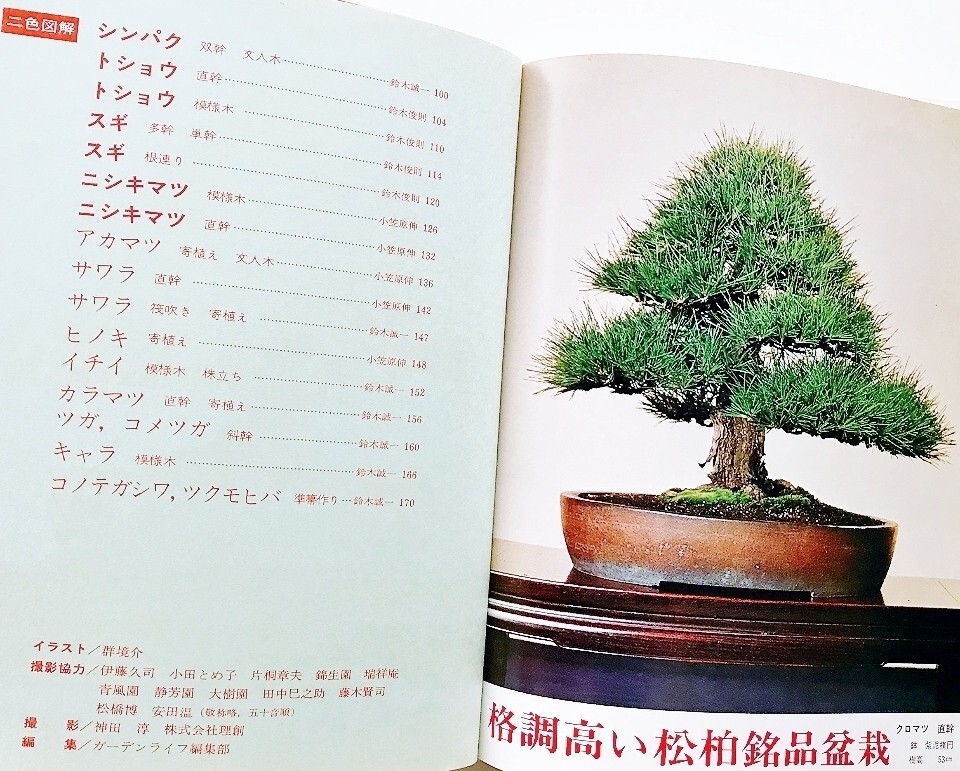 格調高い松柏銘品盆栽の作例カラー写真に始まり、