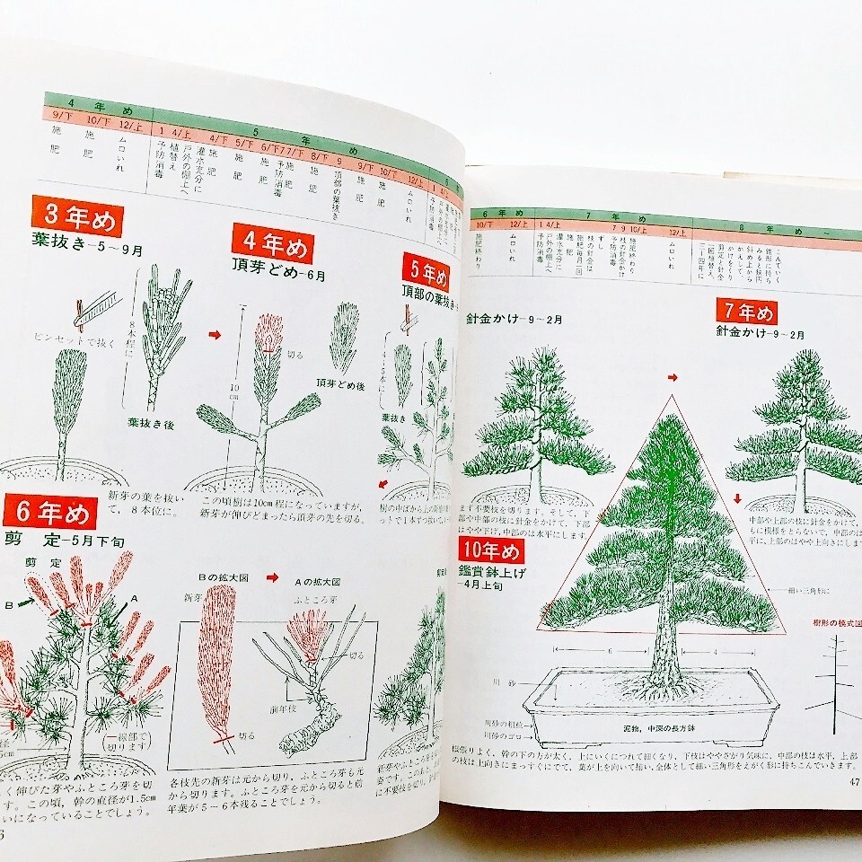 長い目で見た松柏盆栽の知識、作業、実技すべてがこの一冊に集約されており、