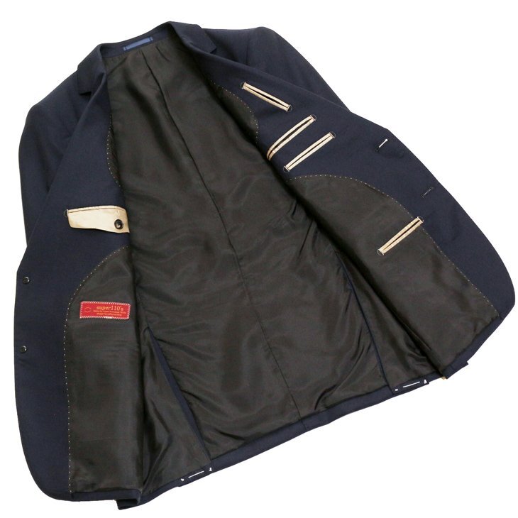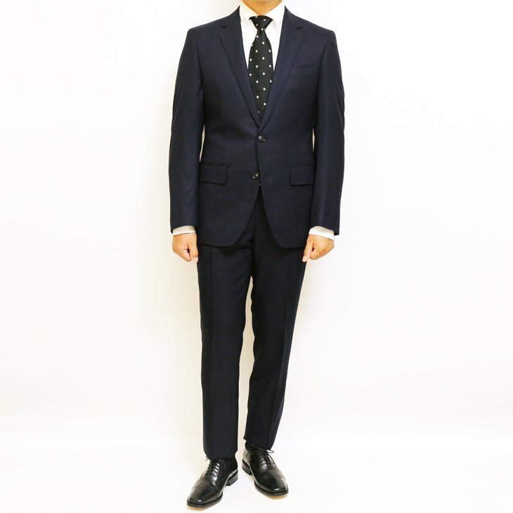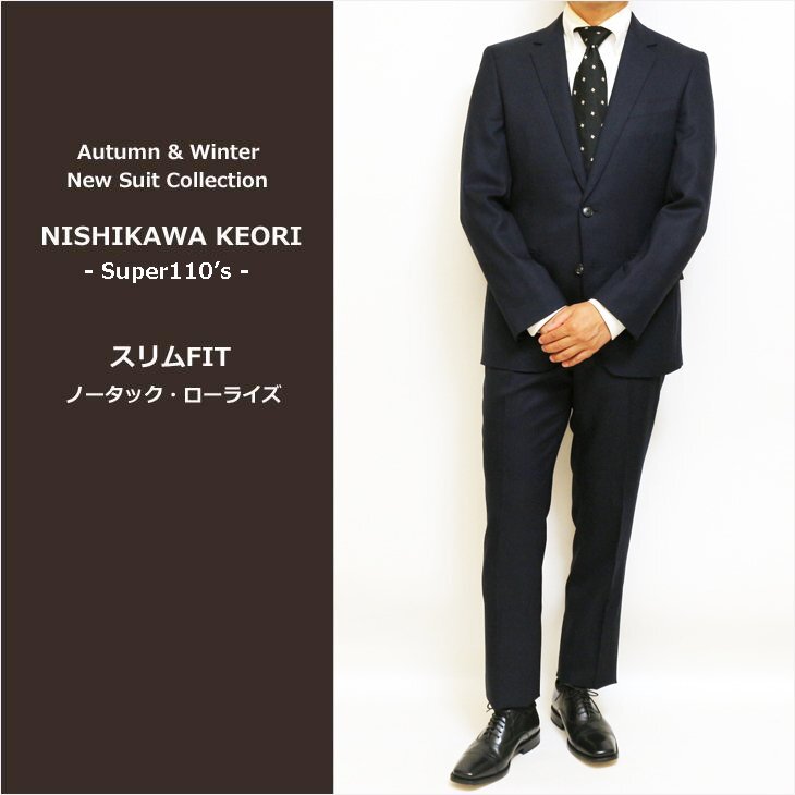 | 品名 | 秋冬モデル 西川毛織 Super110's 濃紺ネイビー無地 2つボタンスーツ(スリム型) | |||||||||||