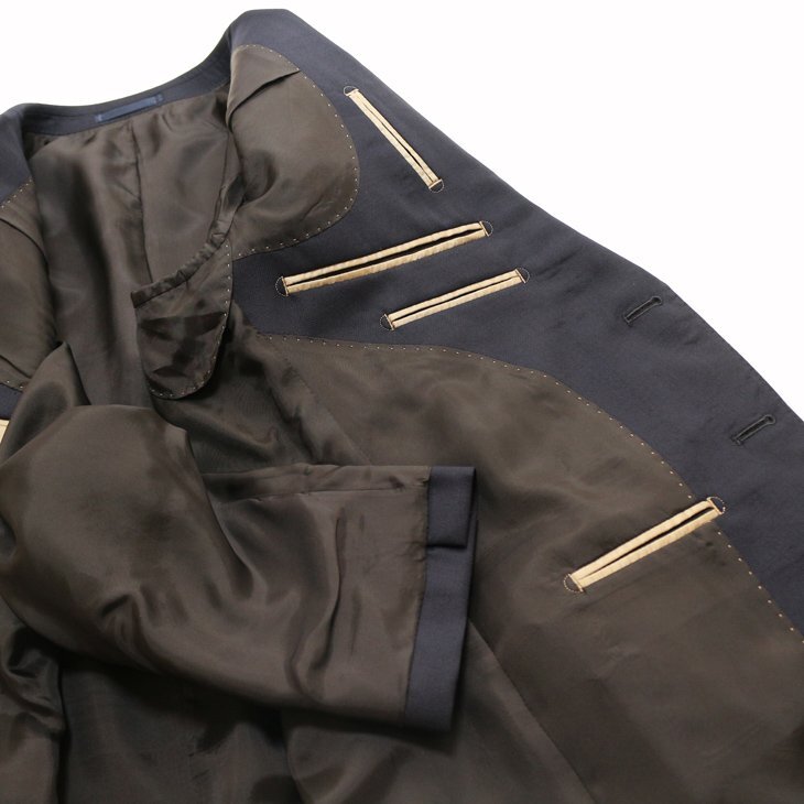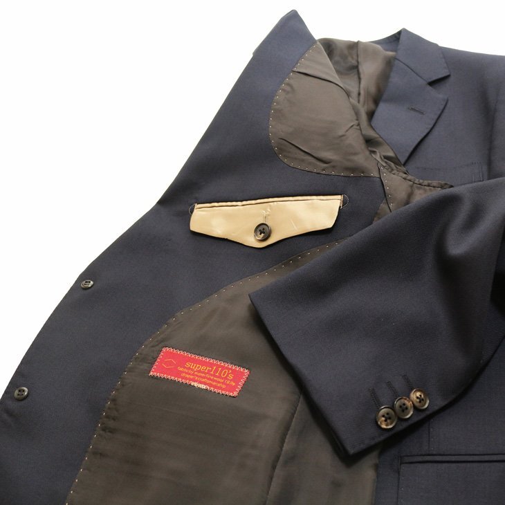 ・フルAMFステッチ:胸ポケット、ラペル、フロントポケット、フロントダーツ、 袖口から肩まで、肩、背裏センター縫い合わせ、サイドベンツ *脇下の縫い合わせとベント上の縫い合わせにはAMFステッチは入りません。 ・Dカン補強:フロントポケット、上着内ポケット、ズボン後ろポケットサイド ・本台場・汗止め・袖口3つボタン×止め・袖口裏額縁仕上げ・ピンポンステッチ・チョーシック ・フロント、袖口など各部接着芯にて補強し物性強度を高めた仕様にしております。 ・本水牛ボタン:フロント、袖口、ズボンの前、後ろポケット ・シロセット加工は、バブリング防止に上着の縫い合わせとズボンのクリーツに施しました。 生産国:ミャンマー製 *仕上げのプレスは、国内で施しております。 |