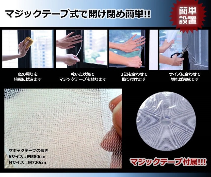 | マジックテープ式 万能 網戸キット Mサイズ 160×200cm |
