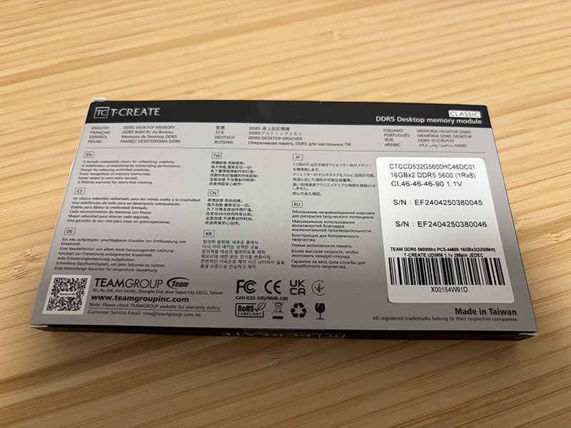 TEAMGROUP DDR5 5600MHz PC5-44800 16GBx2(32GBkit) デスクトップメモリ CTCCD532G5600HC46DC01(CTCCD516G5600HC46BK x2)