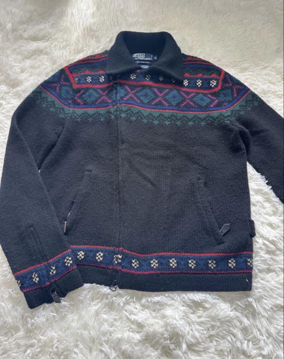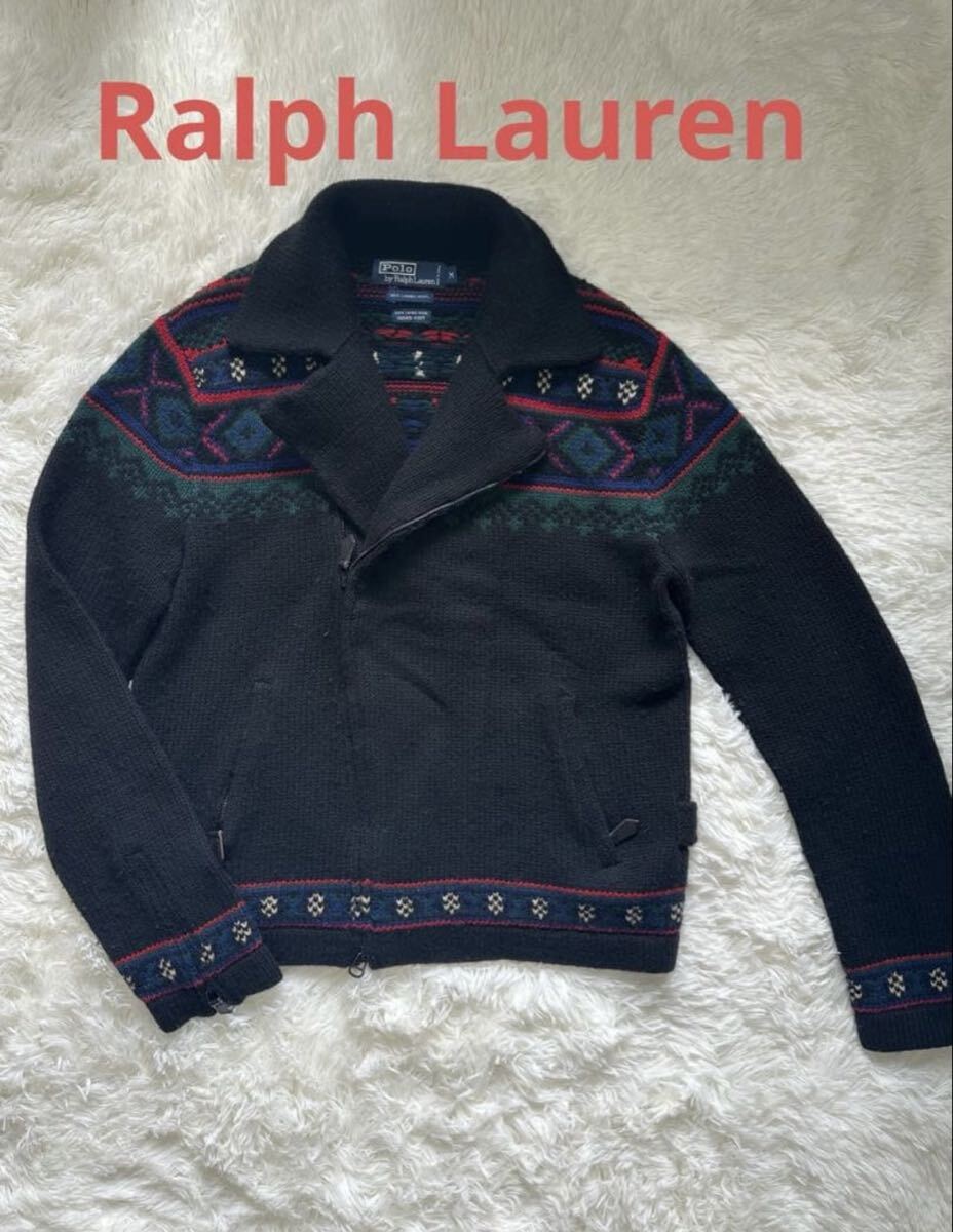 ラルフローレンの非常に珍しいネイティブ柄ニットライダースです。