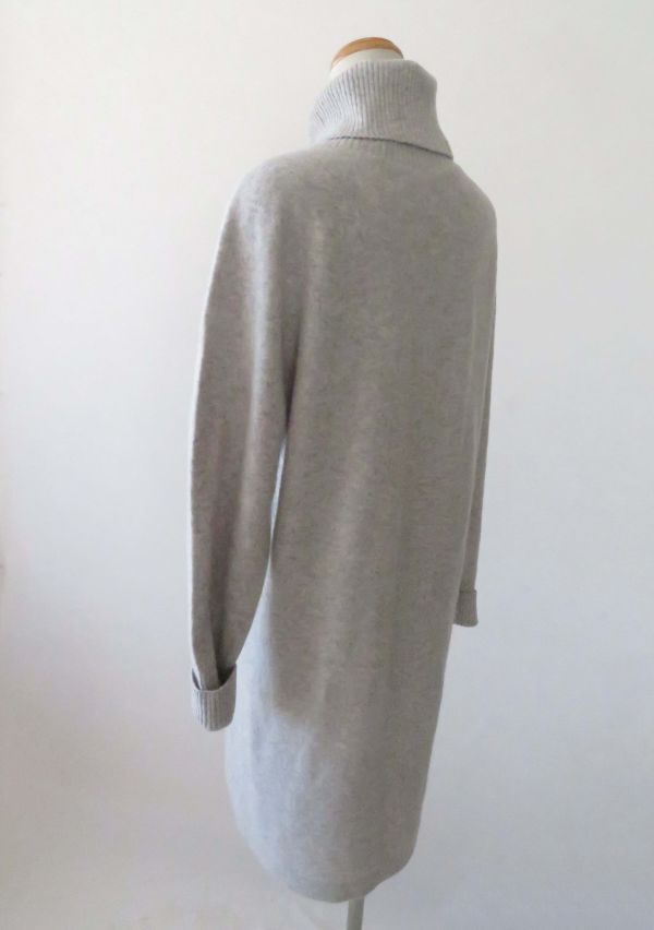 | 詳細 | 中手の機械編み伸縮地です。気持ちのいい肌触りのソフトで素敵なニット地です。グレーの混ざり感がある優しい色あいでハイネックからシンプルに気持ちよく使えるデザインで仕上げてあるニットです。 状態は綺麗なものです。 |