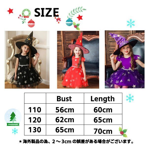 | ☆スタードレス パールベルト 帽子付き ※ご購入しましたらオーダーフォームにてご希望のサイズとカラーをお知らせください。 【サイズ】 ■110cm ■120cm ■130cm 【カラーバリエーション】 ■パープル ■ブラック ■レッド 【商品名】 スタードレス パールベルト 【素材】 ・ポリエステル ・コットン 【サイズ】 ・110 ・120 ・130 【バリエーション】 ■パープル ■ブラック ■レッド 【詳細】 ベルトにイミテーションパールをあしらったベルト! 背面ファスナー。スカート内部に簡易パニエ付き。 それぞれのカラーに合わせたとんがり帽子がセット! 【特徴♪】 ・可愛すぎる!スター柄の魔女ドレスが登場です♪ ・腰のパールベルトのワンポイントがとってもキュート★ ・3カラーから!お子様にぴったりな白をお選びください。 ・パーティーやお遊戯会に活躍!インスタグラムにアップすればたちまち人気者です★ ・帽子つきでしっかりコスプレできる嬉しいセットです。 ・スカート部分に簡易パニエが内臓されていて、可愛くふわふわに! *別売りのパニエをお使いいただくとよりボリュームアップできます。 | ||||