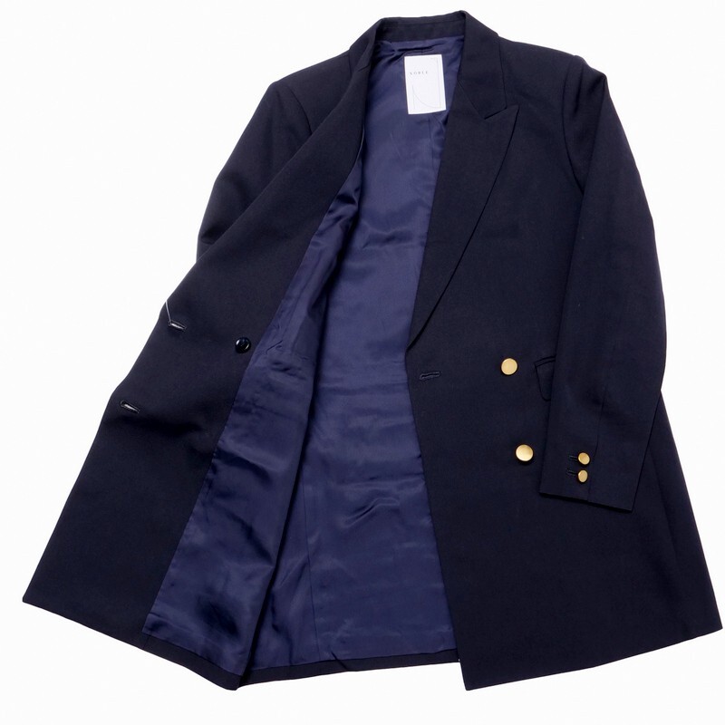 | MI3672#ノーブル*NOBLE*テーラードジャケット*ダブルブレスト*ブレザー*長袖*ロング*定価3.3万円+税*ネイビー系*サイズ40 | |||