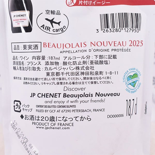 | ワイン ミニパウチ3本セット JP シェネ ボジョレーヌーボー 2025年 赤 187ml 12% フランス JP CHENET L07S158 | |