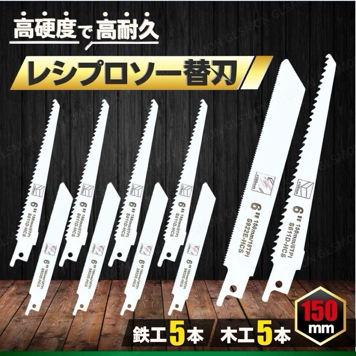 | レシプロソー 替刃 150mm 木工用5本 薄金属用5本 セット |