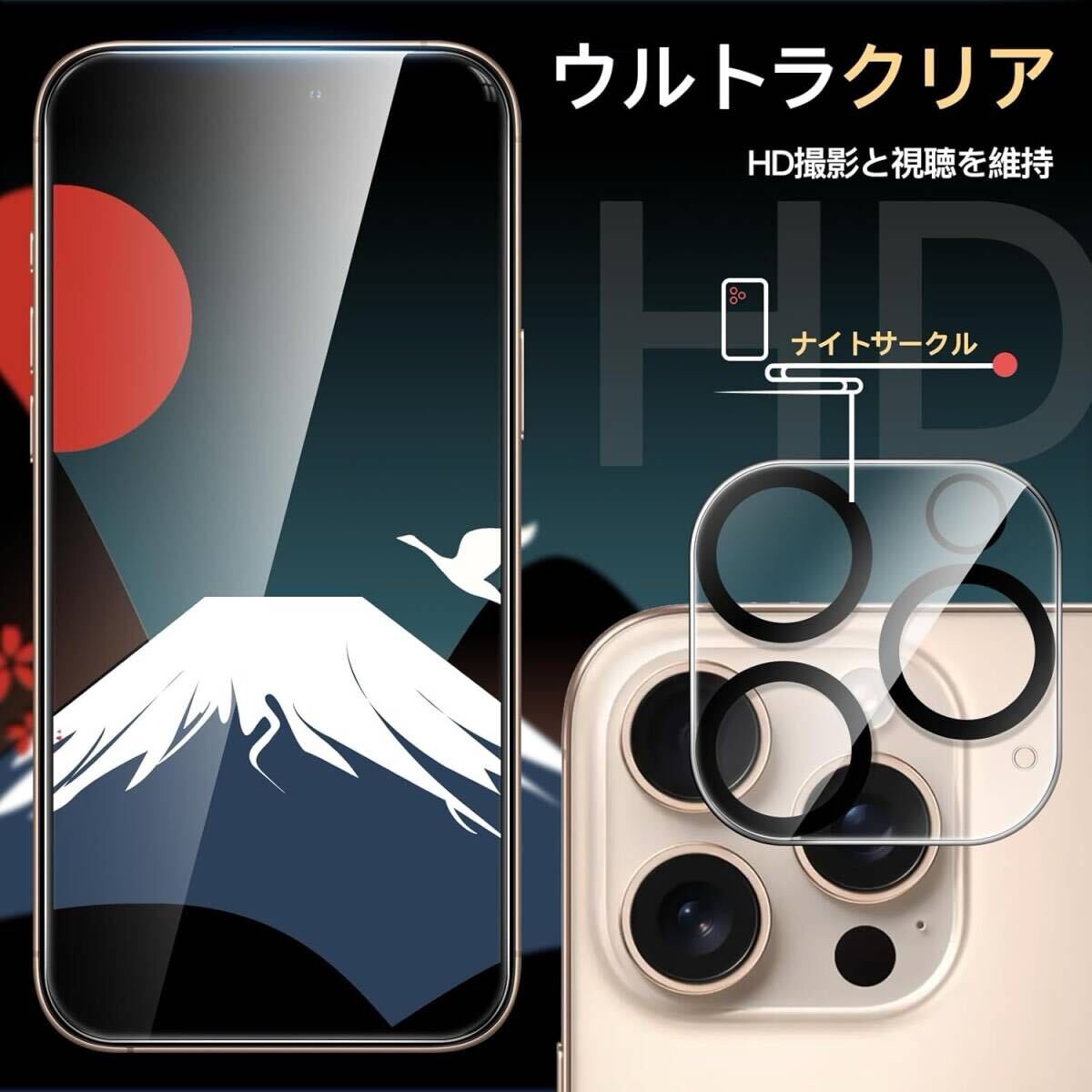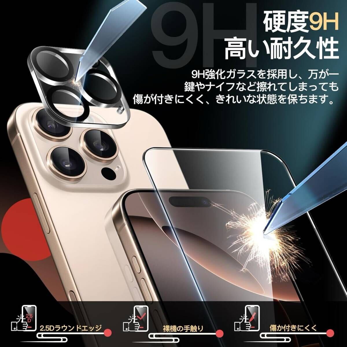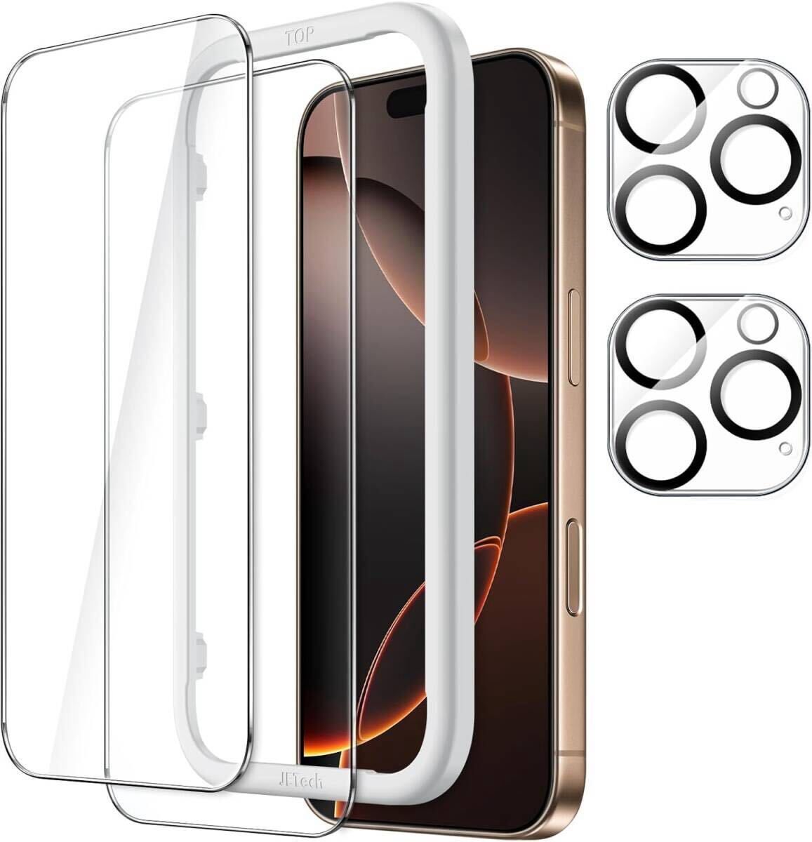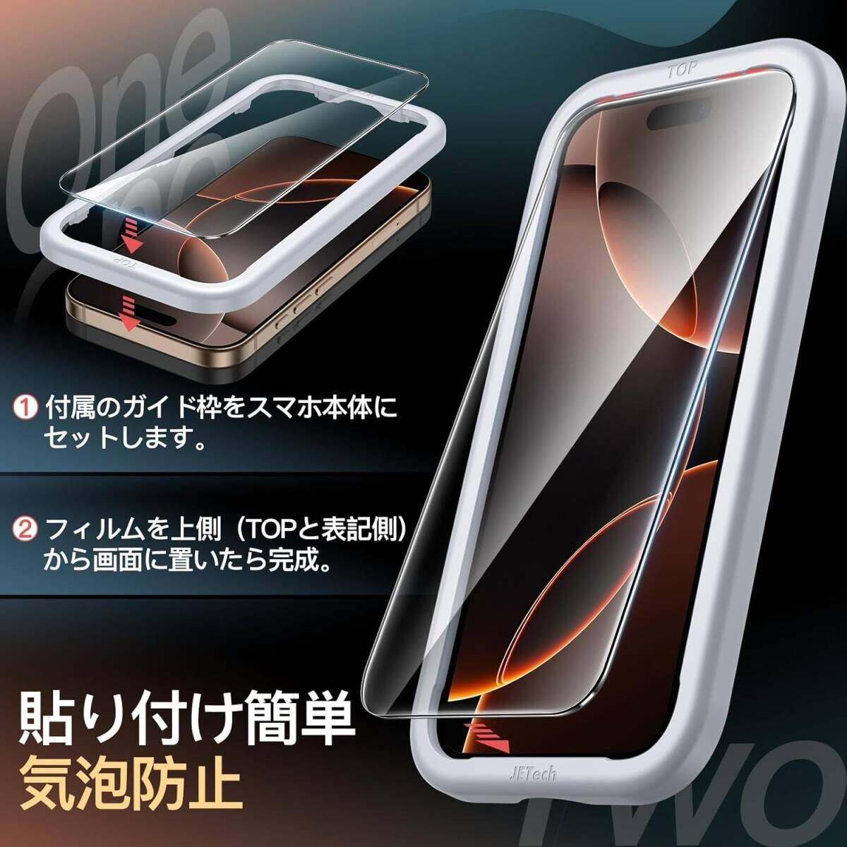 JETech iPhone 16 Pro Max 6.9インチ用 液晶保護フィルム+カメラレンズフィルム ガイド枠付き 強化ガラス製 HDクリア 2枚+2枚セット