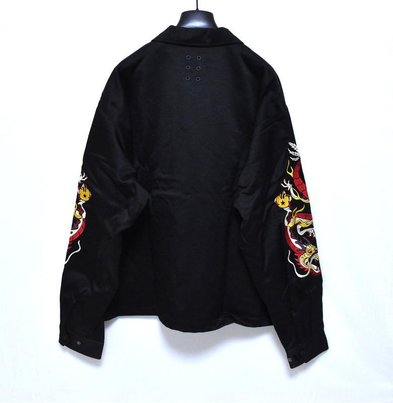 新品未使用の国内正規品。 胸元と袖に赤と黄色の豪華な龍の刺繍が施されています。 背面にはルチャマスク、ブランドアイデンティティーの6ホールアイレットデザインを配置しています。 【色】・・・ブラック。フラッシュの関係で実物と画像では多少の色の濃薄が見られます。ご了承の上ご入札お願い致します。 【素材】・・・表地:ナイロン100%、裏地:ポリエステル65% 綿35%、刺繍糸:ポリエステル100%。 【サイズ】5(L)・・・肩幅約57cm、身幅約66cm、着丈約68cm、袖丈(肩の付け根から計測)約63cm。 【状態】・・・新品未使用。保管時の軽度のしわが見られます。 ご了承の上、入札お願いいたします。 他にも多数出品致しておりますので、宜しければご覧になって下さい。安値での出品ですのでこの機会に是非どうぞ! |