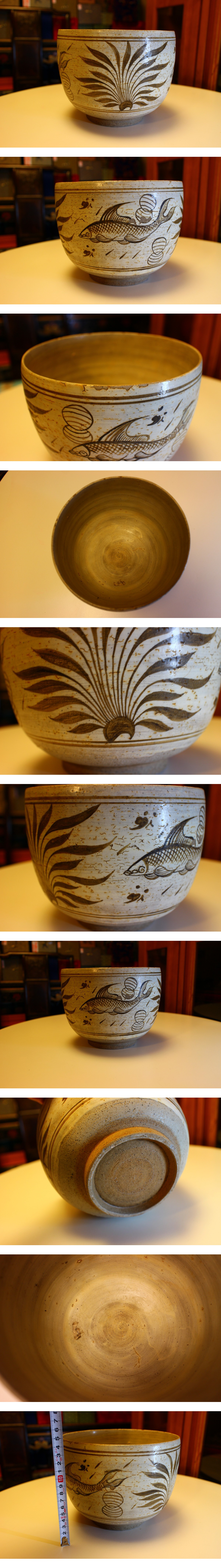 中国美術 時代磁州窯 海藻魚文鉢 茶碗 「状態良好」  中国美術骨董茶道具茶碗唐物中国古玩煎茶具鉄瓶銀瓶茶托茶筒湯沸掛軸純銀