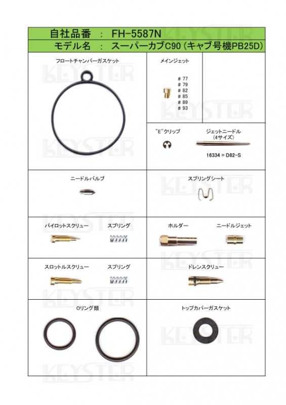 | キースター 燃調キット スーパーカブ90、C90(適合キャブレター号機:PB25D)用キャブレター オーバーホール&セッティングパーツセット(FH-5587N) |