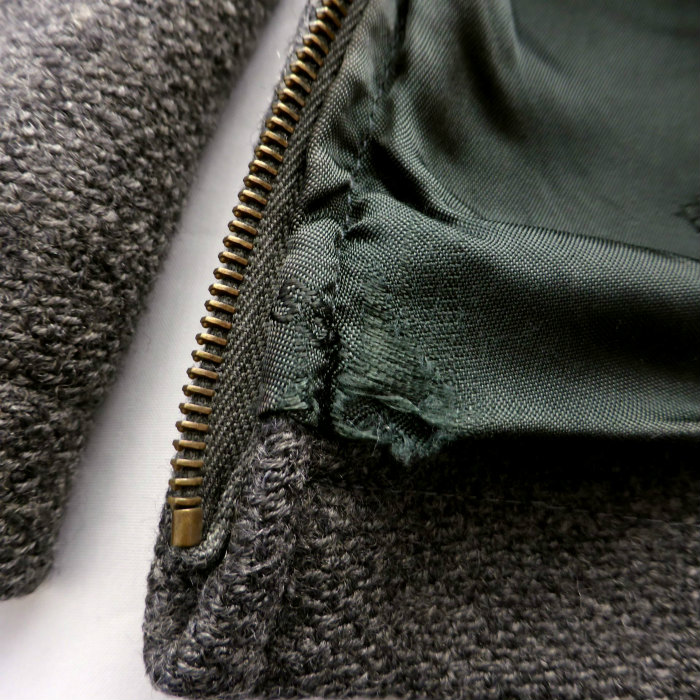 | 袖口にやぶれ、裏地に数か所劣化が見受けられますがまだまだお使いいただけるお品です。 |