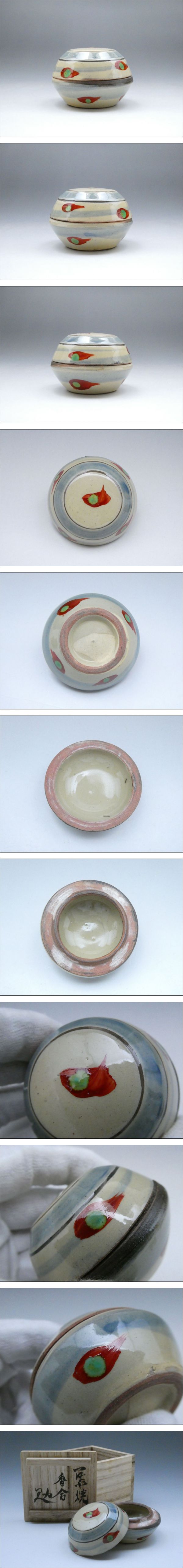 | ★商品★ ・香合 ★製造元★ ・新垣製陶所 ★寸法★ ・高さ (約)4cm ・胴径 (約)5.5cm ★重量★ ・(約)99g ★付属品★ ・共箱 ・栞 ★状態★ ・香合に目立った傷、汚れは見られません。 ・共箱に加工痕の見られる箇所がございます。 ※備考※ 商品状態に関しては、あくまでも当方の見立てとなります。 程度には個人差がございますので、商品画像を良くご覧になられた上でのご入札お待ちしております。 |