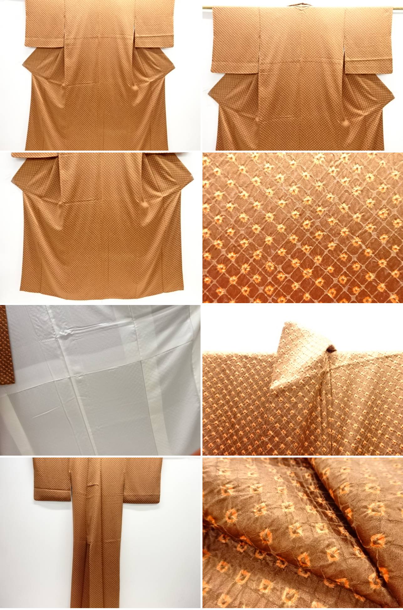 衿は広衿です。 右後身頃裾寄りに薄線ヤケが有ります。 絞り特有の薄アクが有ります。 状態は良いです。 着用可能です。 採寸・検品:北河 撮影:あかほし 素材は正絹です。 地色は茶です。 お支払い方法、送料・手数料はストア情報よりご確認お願いいたします。 全国一律1300円。11000円以上で送料無料 ※8/12より送料が変更されています。ご理解の上ご入札ください。 複数ご落札の場合で個別に発送住所がそれぞれ異なる場合は、お手数ですが、別途メールでご連絡下さい。 以前と発送先が異なる場合、別途メールでご連絡下さい。 多少の時代シミ、くすみがある場合があります。 デジタルカメラやモニターの特性により色が忠実に再現できない場合があります。 ご理解頂いた上でのご入札お待ちしております。 ご返品もお受け致しますが、送料、振り込み手数料は、お客様負担でお願いします。 |