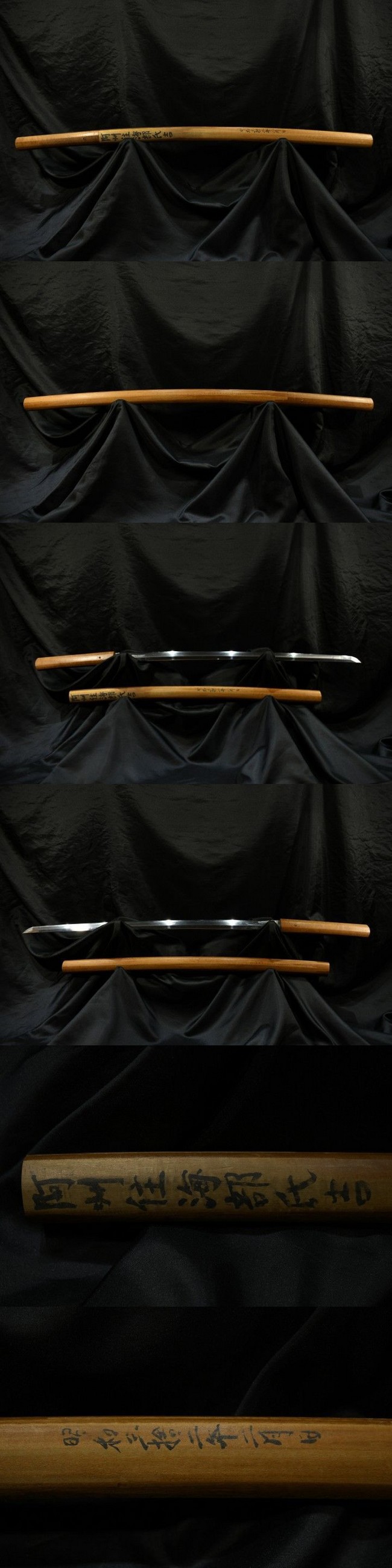 説明:古い蔵に保管されていた刀です。鞘書きがあり阿州住海部氏吉とあります。刃紋・鍛え見事な一刀です。