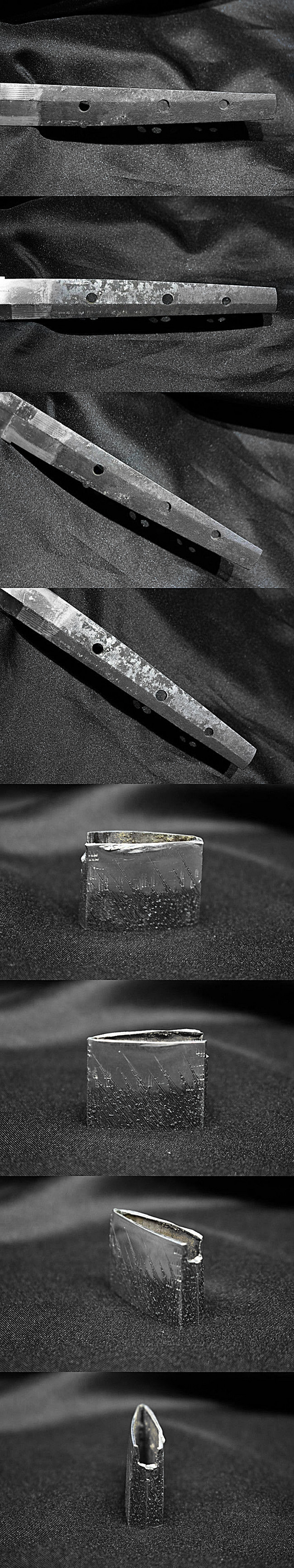 表【-】 裏【-】 種別:刀 サイズ:長さ 68cm 反り: 1.0cm 目くぎ穴 3個 元幅:約 2.859cm 元重:約 0.600cm 先幅:約 1.858cm 先重:約 0.352cm 刀身重量:約 545.2g(ハバキ・柄をとった状態) ハバキ重量:約 23.6g 鞘全長:約 95.2cm |
