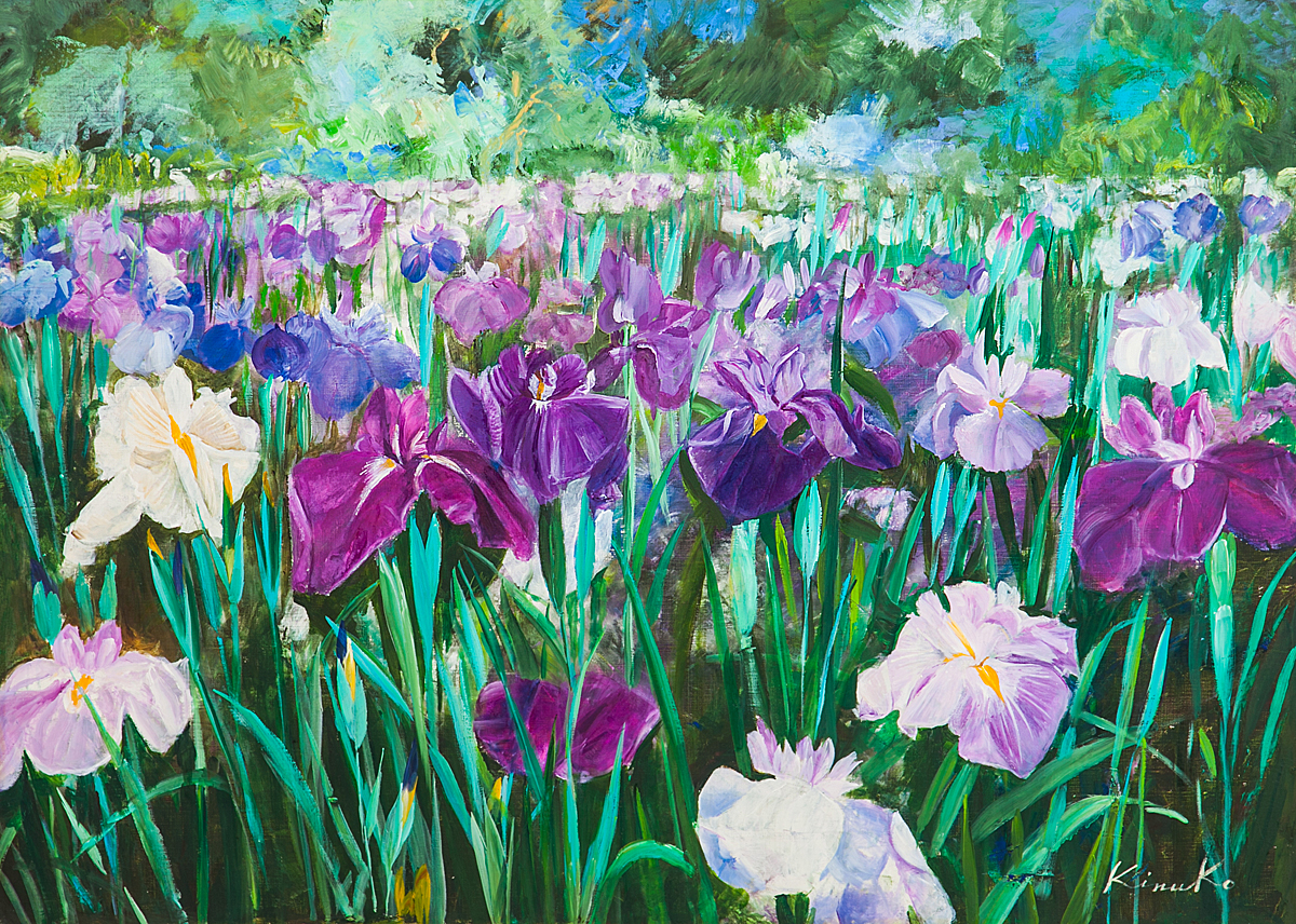 品名 真作 中島絹子 『菖蒲』 油彩 キャンバス 30号 額装