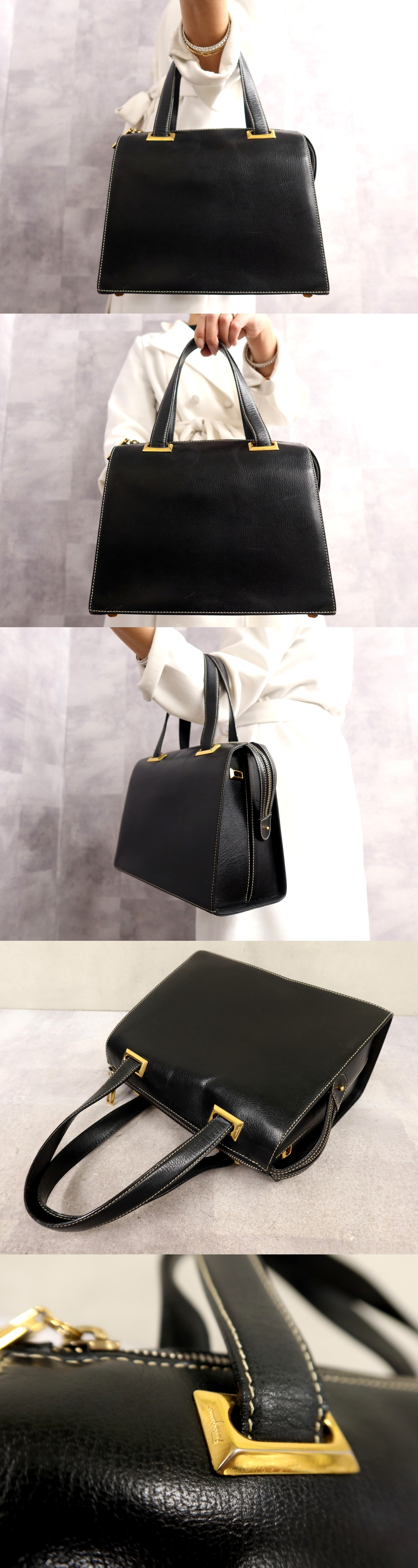 ●超美品●Salvatore Ferragamo フェラガモ●カーフ レザー 本革●ハンド バッグ●黒●ゴールド金具●腕掛け●収納 かばん●Js64799 [浏览原始页面]