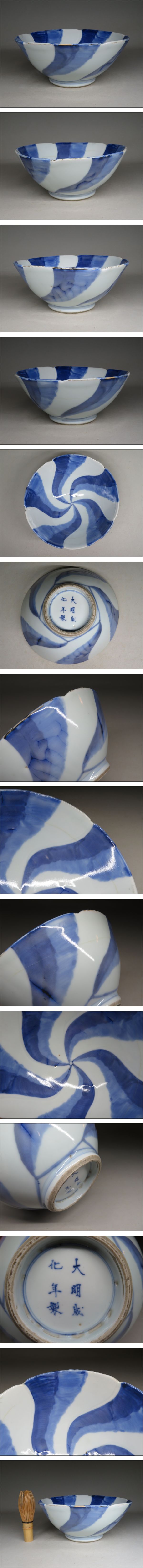 | 【東】明時代「大明成化年製」染付捻文大鉢 青花 茶碗 中国美術/古美術・骨董品 | ||||