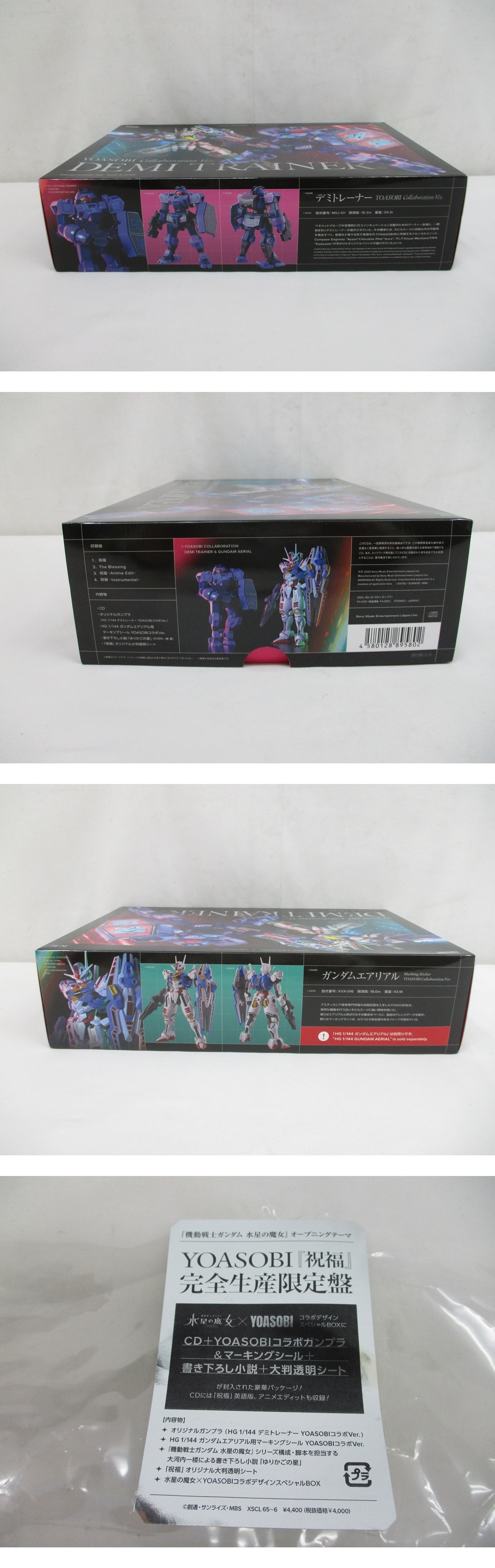 | 「5836B 未使用★ YOASOBI 祝福 完全生産限定盤 機動戦士ガンダム 水星の魔女 OPテーマ/CD HG デミトレーナー YOASOBIコラボガンプラ プラモデル 書き下ろし小説 大判透明シート 」です。 未使用です。 外箱は、多少のスレやキズなとガありますが、概ね良好な状態です。 写真のものが全てです。 画像にてご確認ください。 現状でのお引渡しになりますので、写真をご覧になり、状態を十分にご理解いただいた上でのご入札をお願いいたします。 ★☆★☆★ 送料 ★☆★☆★ 発送方法:ゆうパック 全国一律:1250円(沖縄のみ1810円) 下記の発送詳細と注意事項を必ずご確認ください。 | |