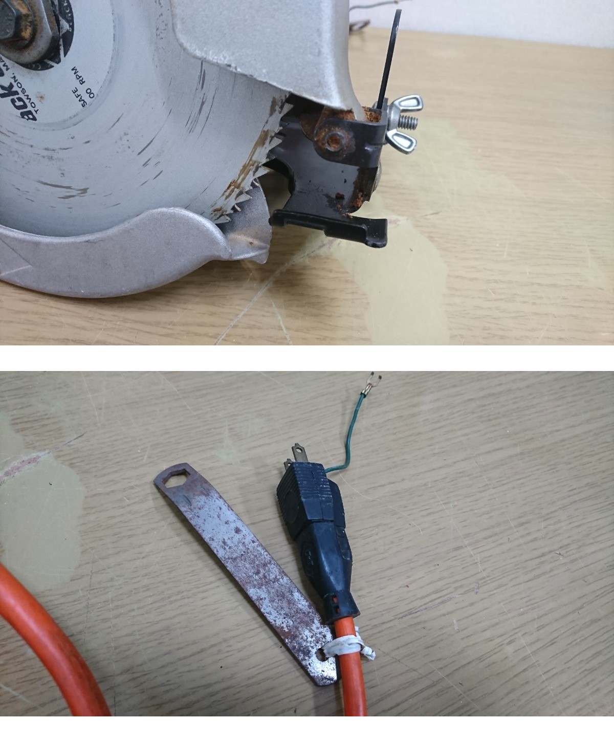 丸ノコは大まかな木くずは取りましたが、取り切れないものや隙間に入り込んだ木くず、汚れはあるとお考えください。