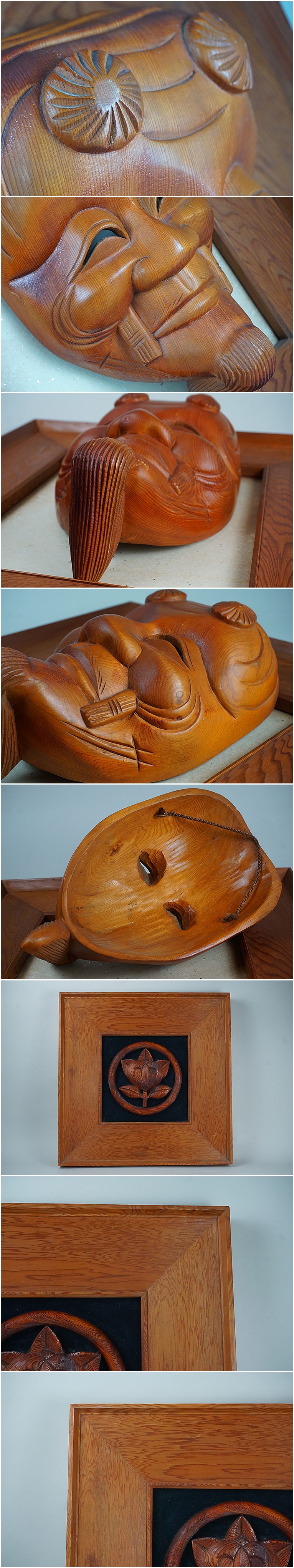 | 商品説明 | 古い屋久杉木彫 額2枚です。 翁面の額は面が肉厚で重さ感じます。 家紋、額はよく乾燥しており軽いです。 どちらも埃、擦れあります。十分飾りには向く額です。 宜しくお願いします。 翁面 高さ18.0cm 巾7.0cm 厚み10.0cm 翁額外径 高さ44.0cm 巾41.0cm 厚み3.0cm 家紋 高さ44.8cm 巾45.0cm 厚み5.5cm | |