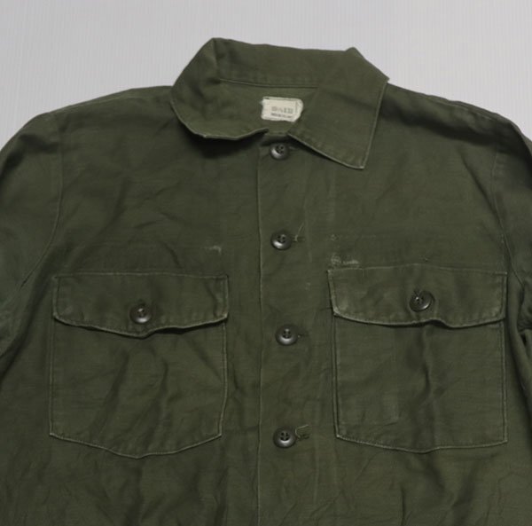 アメリカで買い付けてきました74年製の米軍実物の筒袖の綿100のユーティリティシャツの緑系です。