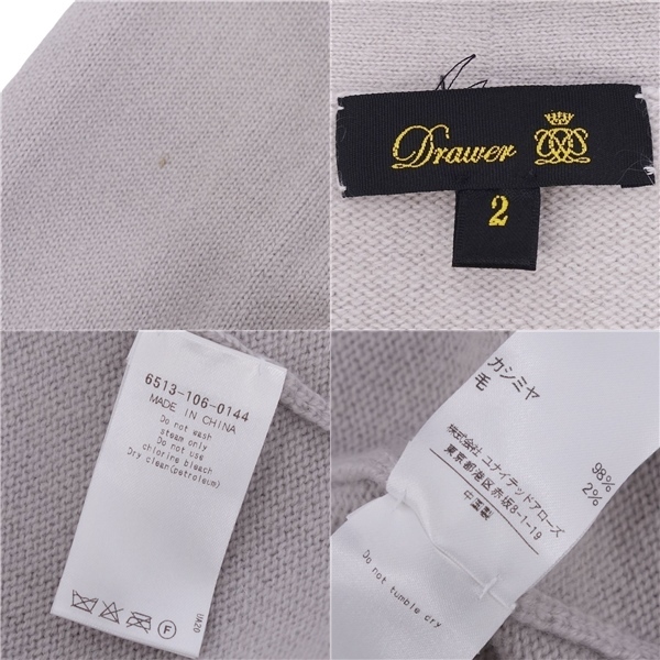| 美品 ドゥロワー DRAWER ニット セーター ロングスリーブ 長袖 Vネック カシミヤ トップス レディース 2 ライトグレー |