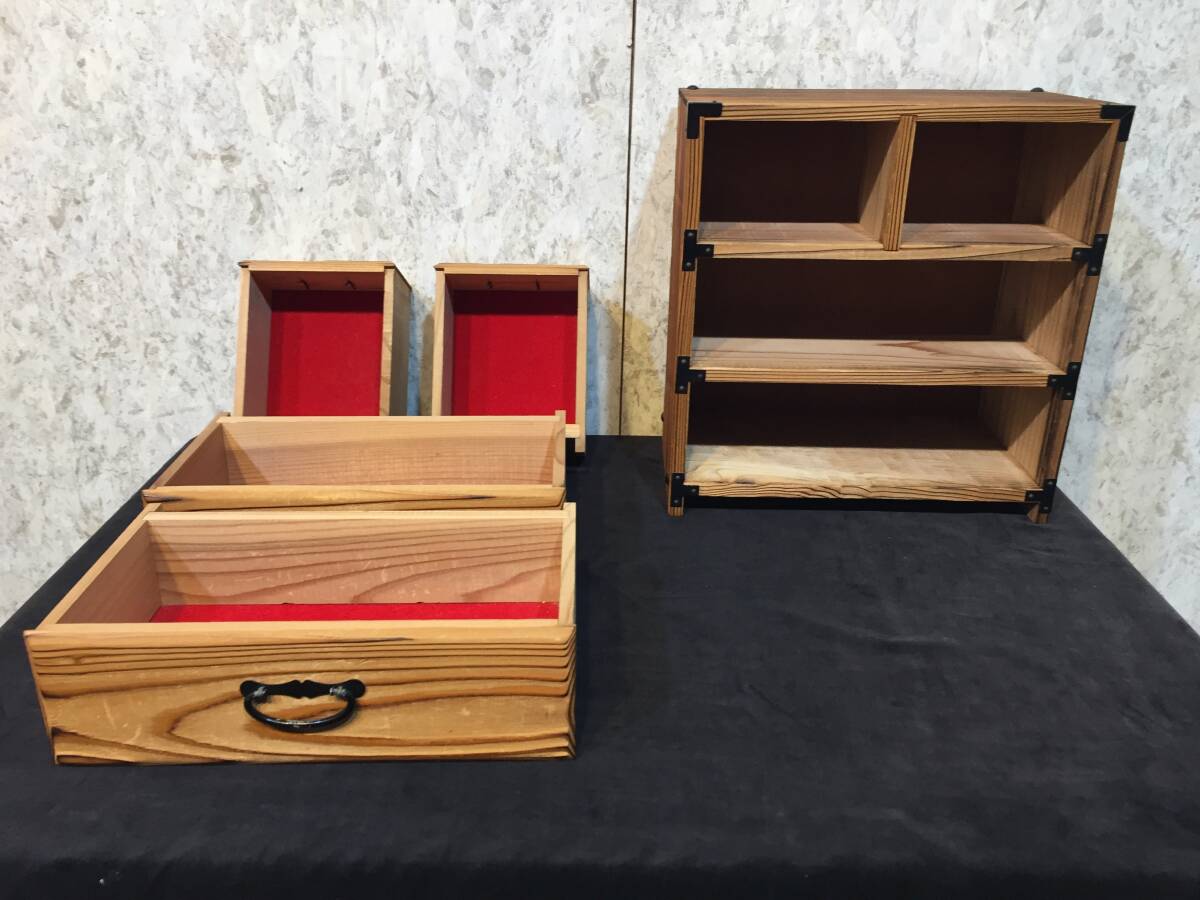 | 商品説明 | 商品説明 管理番号KOB-0611-1270 ≪サイズ≫ 本体寸法:幅28㎝×奥行15.5㎝×高さ29.3㎝ 重量:1.7㎏ 引出寸法(内部):上w10.5㎝×d11.5㎝×h5.5㎝×2 中/下w23.8㎝×d11.8㎝×h5.7㎝ ※寸法は多少の誤差が有ります。 ☆昭和の雰囲気のレトロ感あふれる小型箪笥です。 木工道具や趣味道具、小物入れなど多目的にご使用は如何でしょうか。 発送時は簡単清掃での発送となります。 古いですので、傷や汚れは有りますので気になる方は入札をお控えください。 ☆注意事項をよくお読みください。 送料 佐川急便 飛脚宅配便 サイズ100 信越発 ※宅配サイズ及び信越発を確認後、下記URLから送料をご確認ください。 https://www.sagawa-exp.co.jp/send/fare/list/sagawa_faretable/faretable-5.html#ft01 注意事項 ☆経年によりやや傷や汚れがあります。 ☆時代物中古品ですので、梱包を剥がす際は十分注意してください。 ★商品の発送は佐川急便㈱になります。 ゴールデンウイーク、お盆、年末年始の発送はできません。 ご迷惑をお掛け致しますが、ご容赦願います。 ☆この商品は中古品ですので写真のみにてご判断ください。 (PC等や環境設定により色調に微妙に違って見える場合が ありますのでご了承下さい。) ☆家電品や可動製品等の動作確認はしておりませんので、 気になる方は入札をご遠慮ください。 ☆発送時には丁寧に梱包にてお送りいたしますが、 発送後の破損等の保証は当方では行っておりませんので ご理解をお願いいたします。 ☆ノークレーム ノーリターンでお願いいたします。 |
