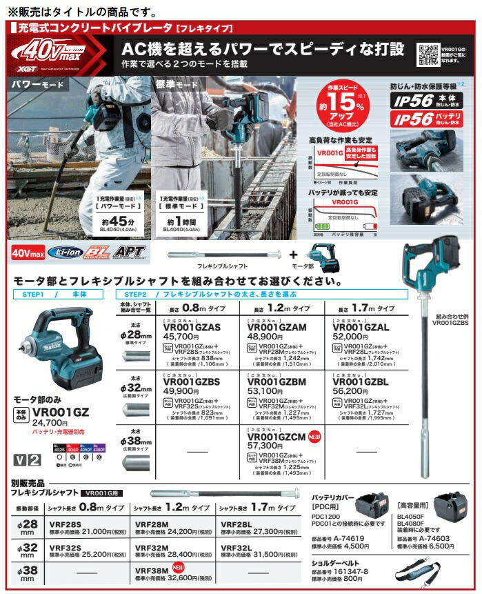 マキタ makitaマキタ別売部品フレキシブルシャフト VRF38M88381593595■仕様・振動部径φ38mm・1.2mタイプVR001G用