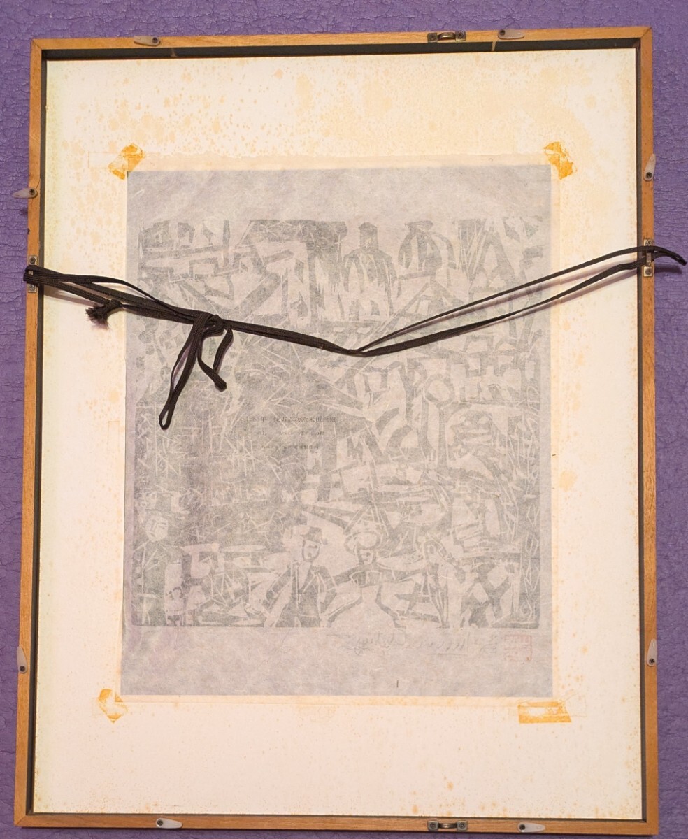 棟方志功スペインマドリード旅行の版画と聞いています。目立った汚れはありませんが長年保管していましたのでシミなどあると思います。気になる方の入札は差し控えてください。高齢となり断捨離出品です。画像参照の上ノンクレームでお願い致します。美術収集家から購入しました。鑑定書ありません。