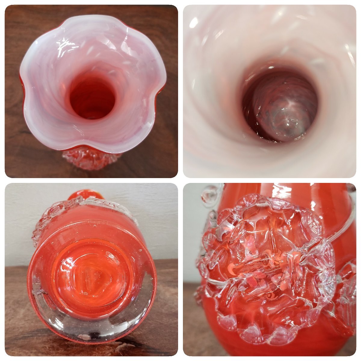 | 商品名 | 大正硝子 花器 フリルガラス 乳白硝子 赤 花 大正浪漫 大正ロマン レトロ レッド 花瓶 花入れ フラワーベース | |||||||||||||||||||||||||
