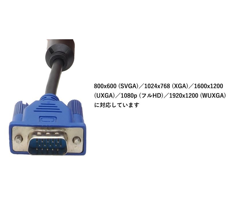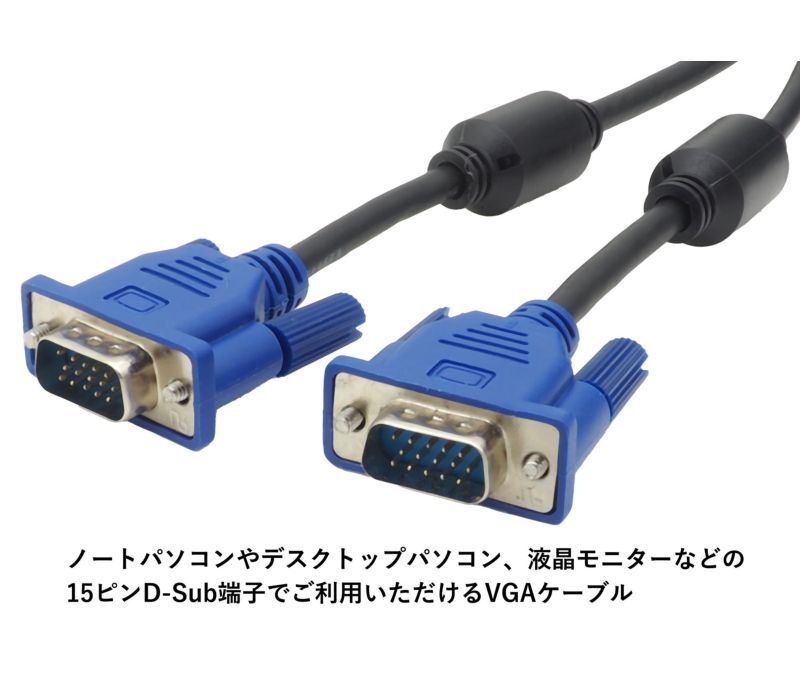 ノートパソコンやデスクトップパソコン、液晶モニターなどの15ピンD-Sub端子でご利用いただけるVGAケーブル