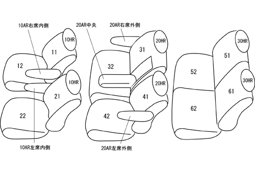 | ■シートパターン | ヘッドレスト総数:6 1列目肘掛:2 2列目肘掛:3 3列目肘掛:0 サイドエアバッグ:設定なし |
